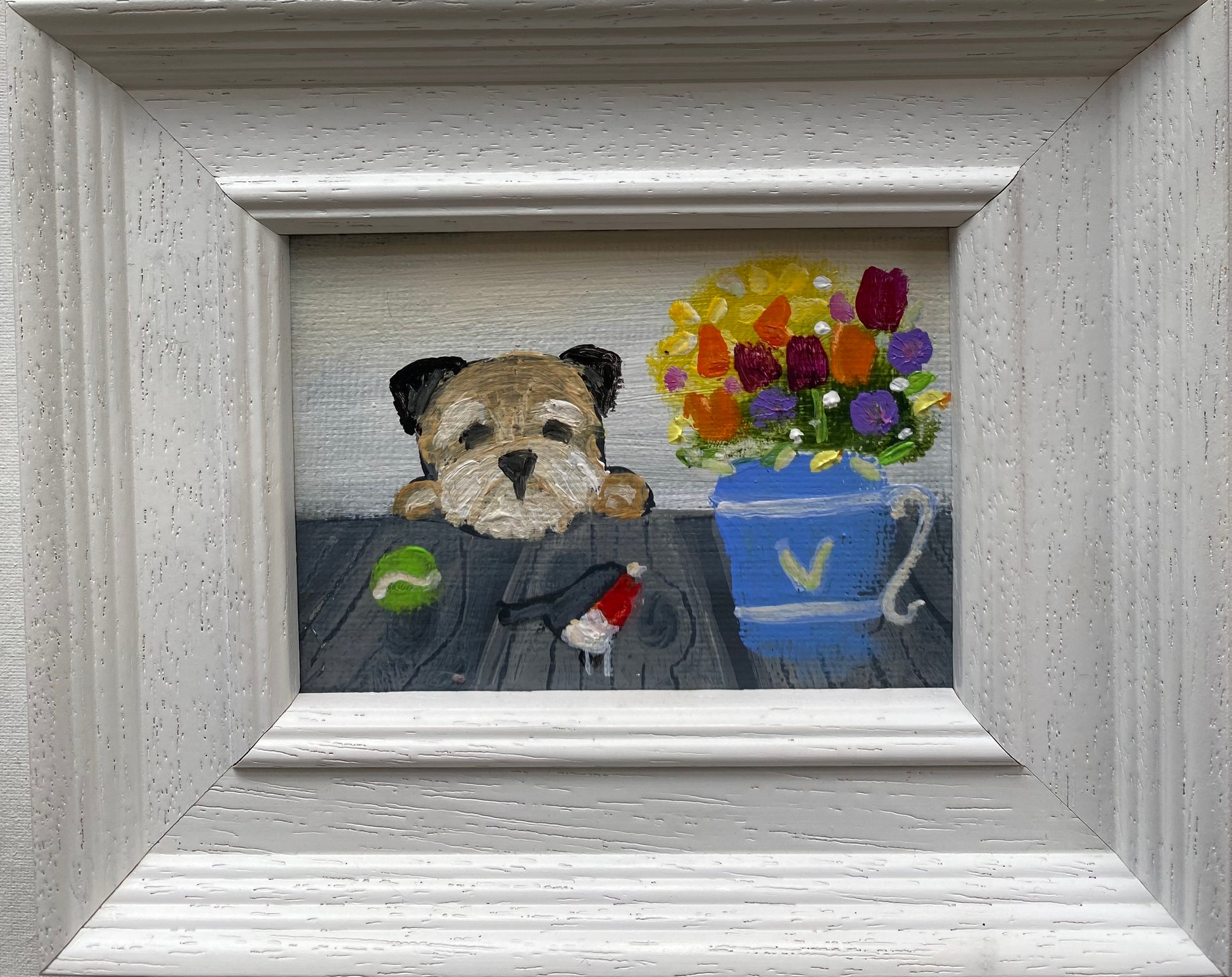 2.5” x 3.5” mini canvas board original in a bespoke wooden frame