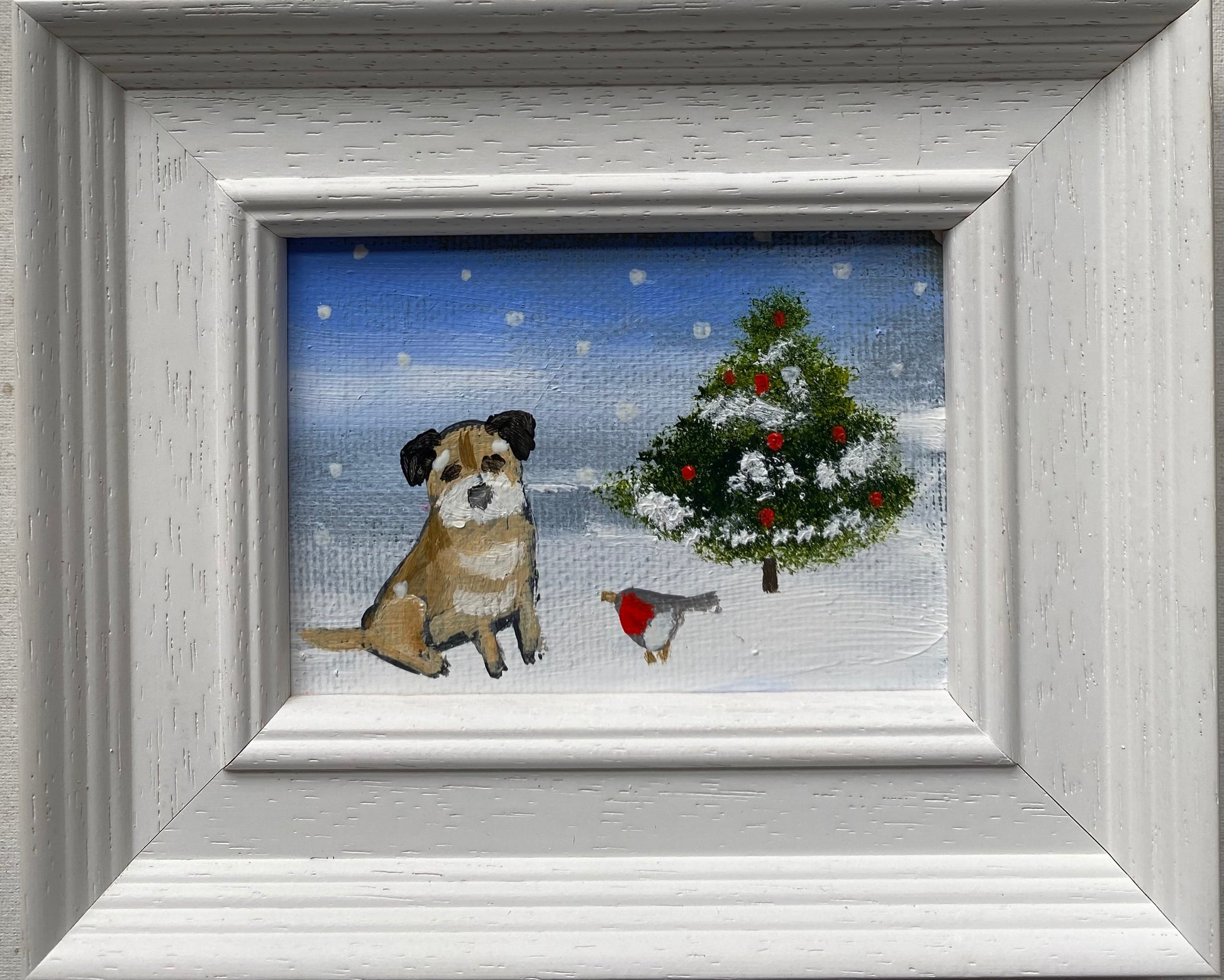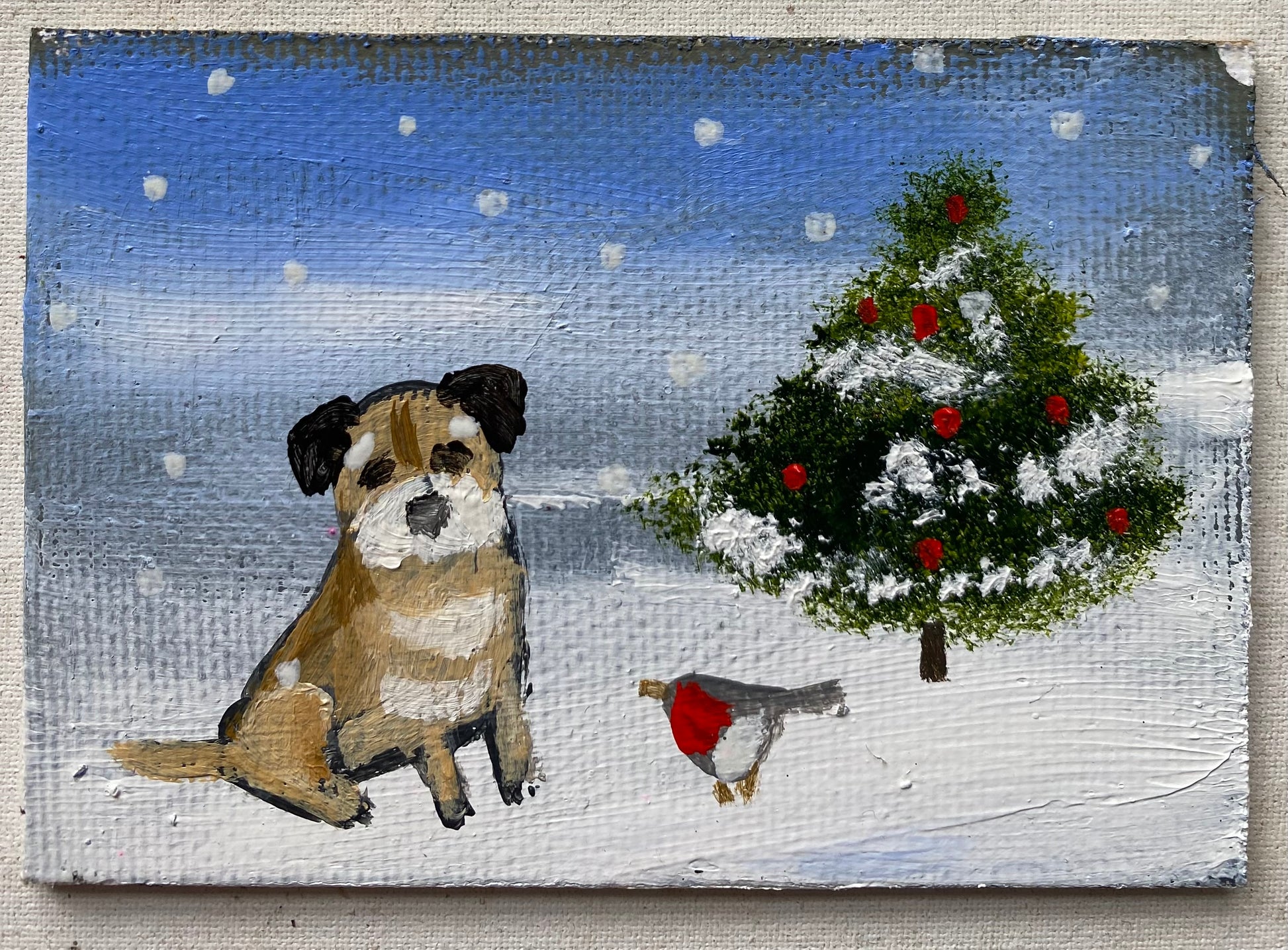 2.5” x 3.5” mini canvas board original in a bespoke wooden frame