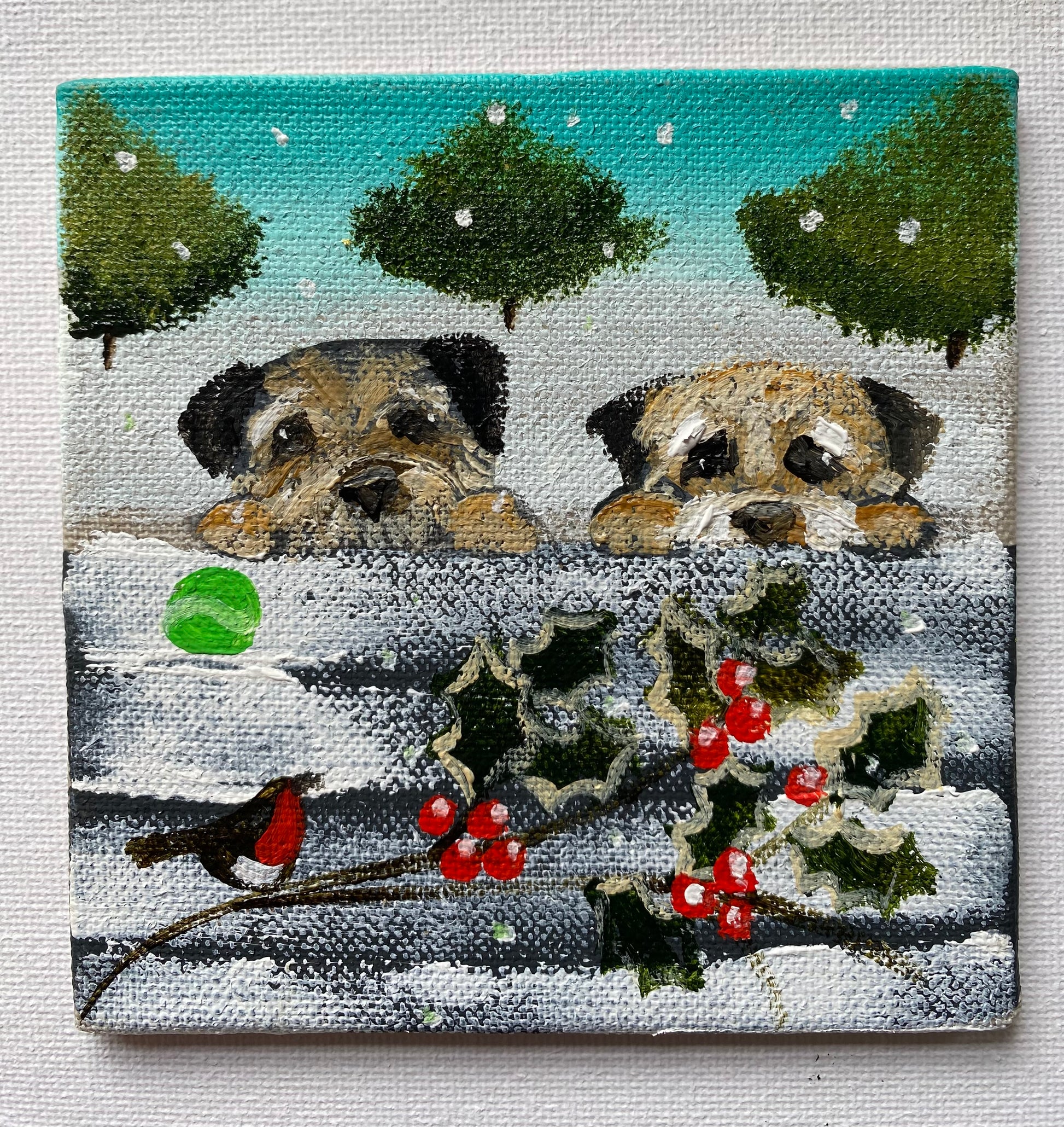 10cm x 10cm acrylic on linen board in a bespoke wooden frame