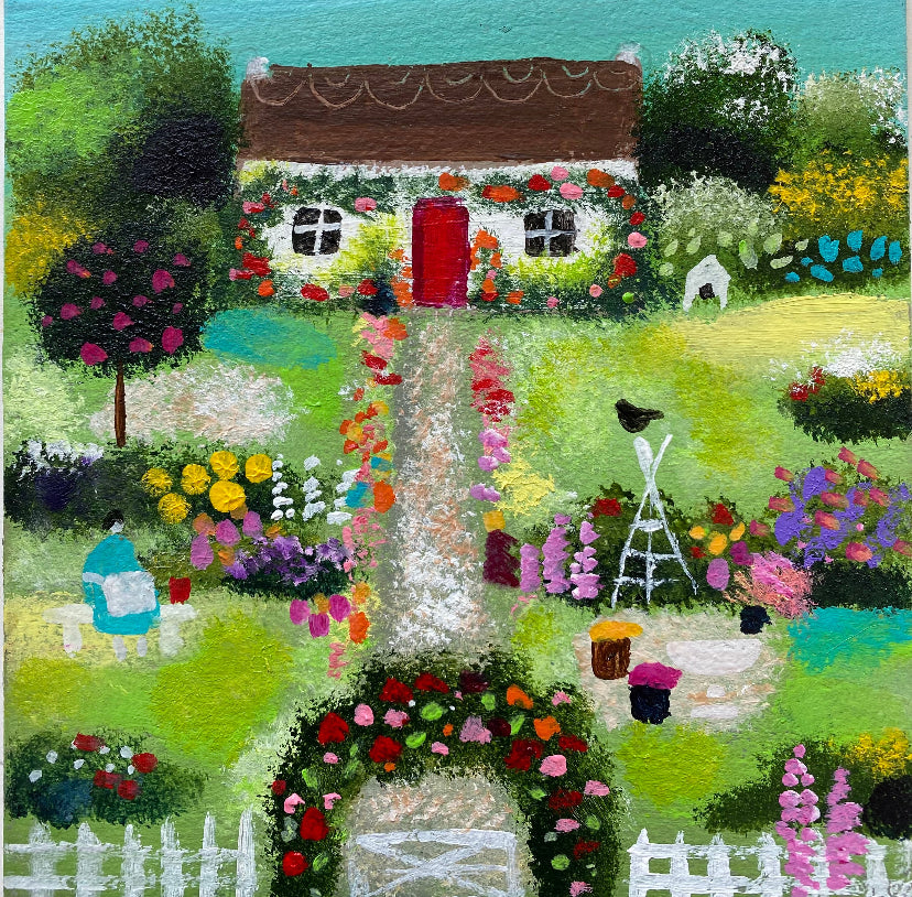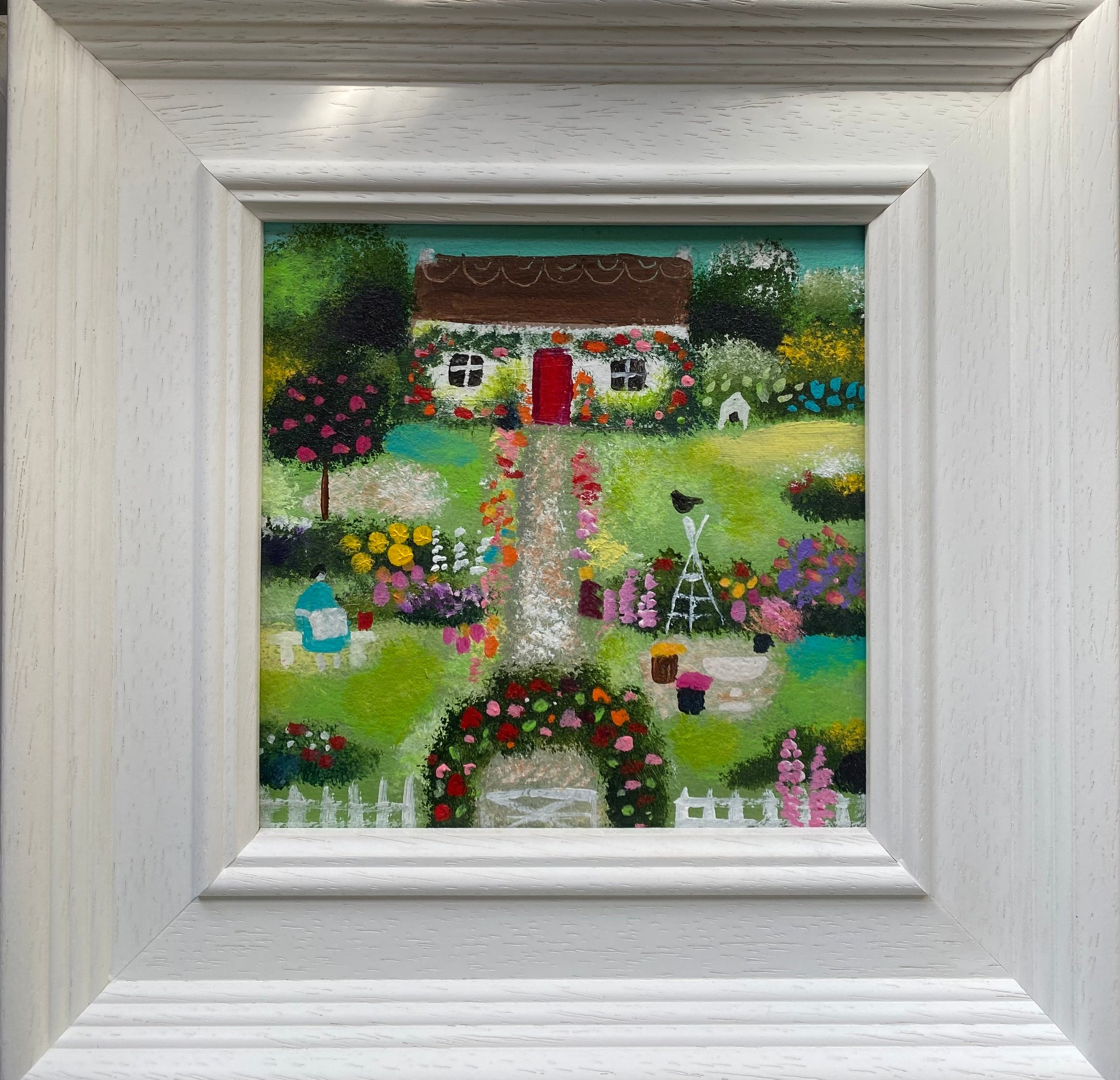 15cm x 15cm acrylic on canvas board in a bespoke wooden frame.