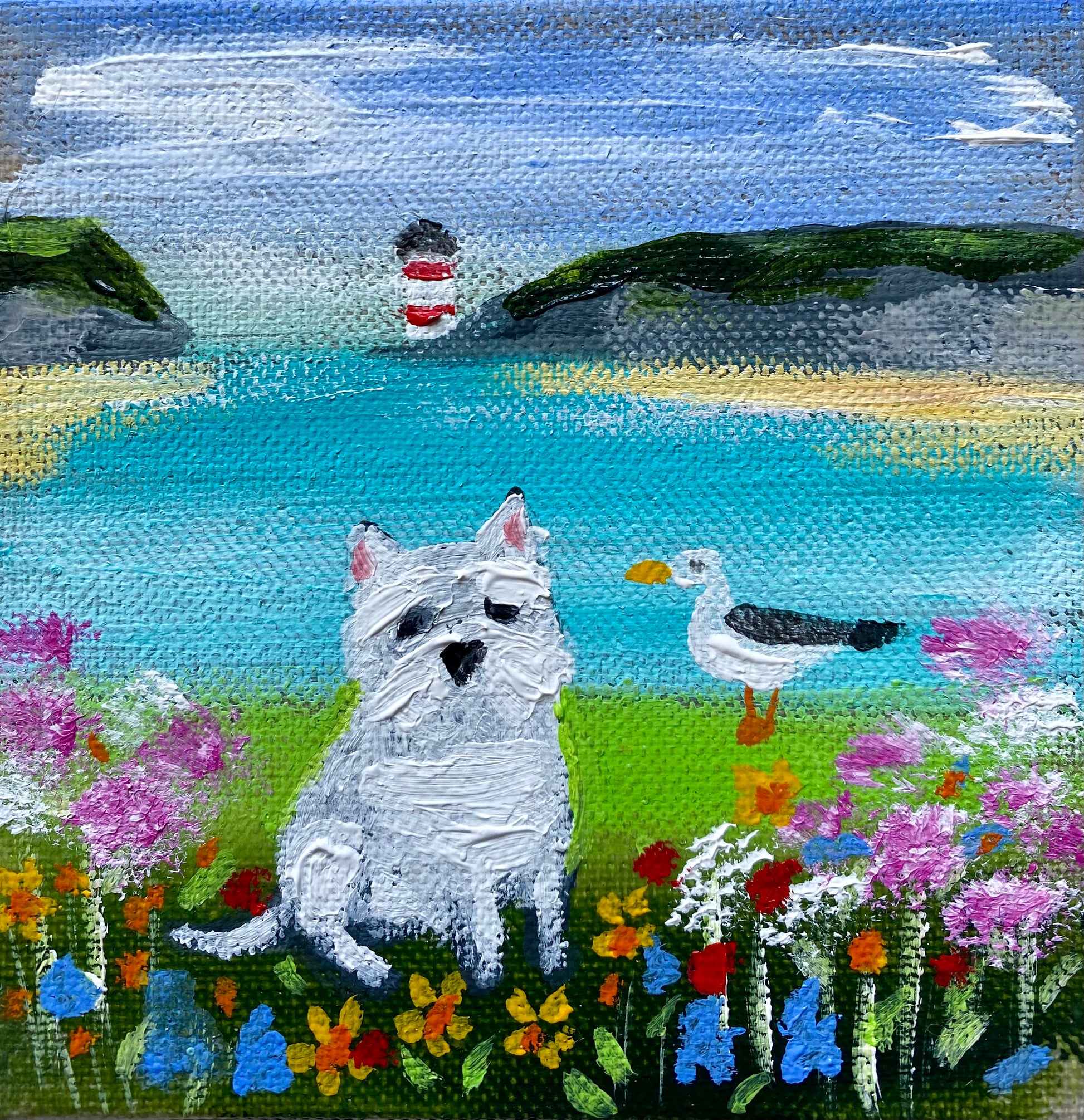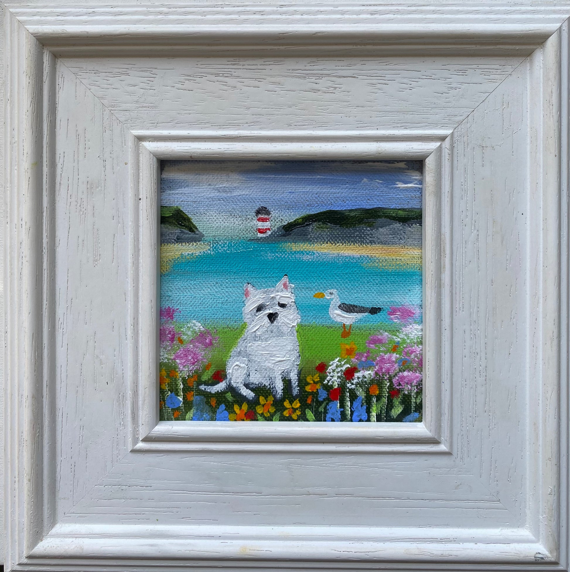 10cm x 10cm acrylic on linen board in a bespoke wooden frame