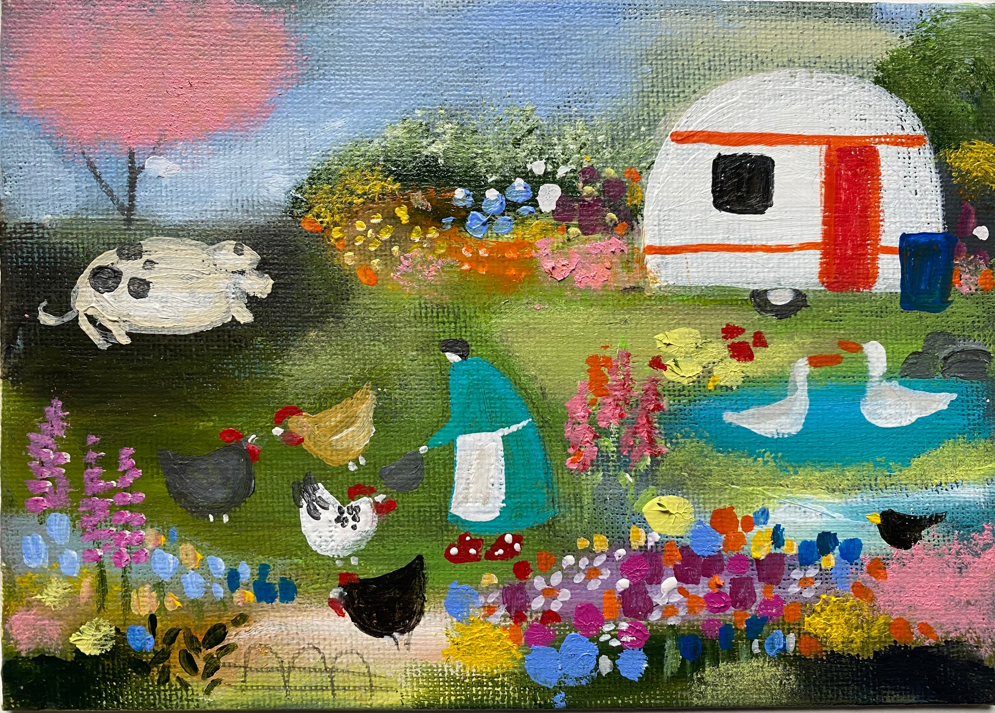 5” x 7” acrylic on canvas board in a bespoke, wooden frame.