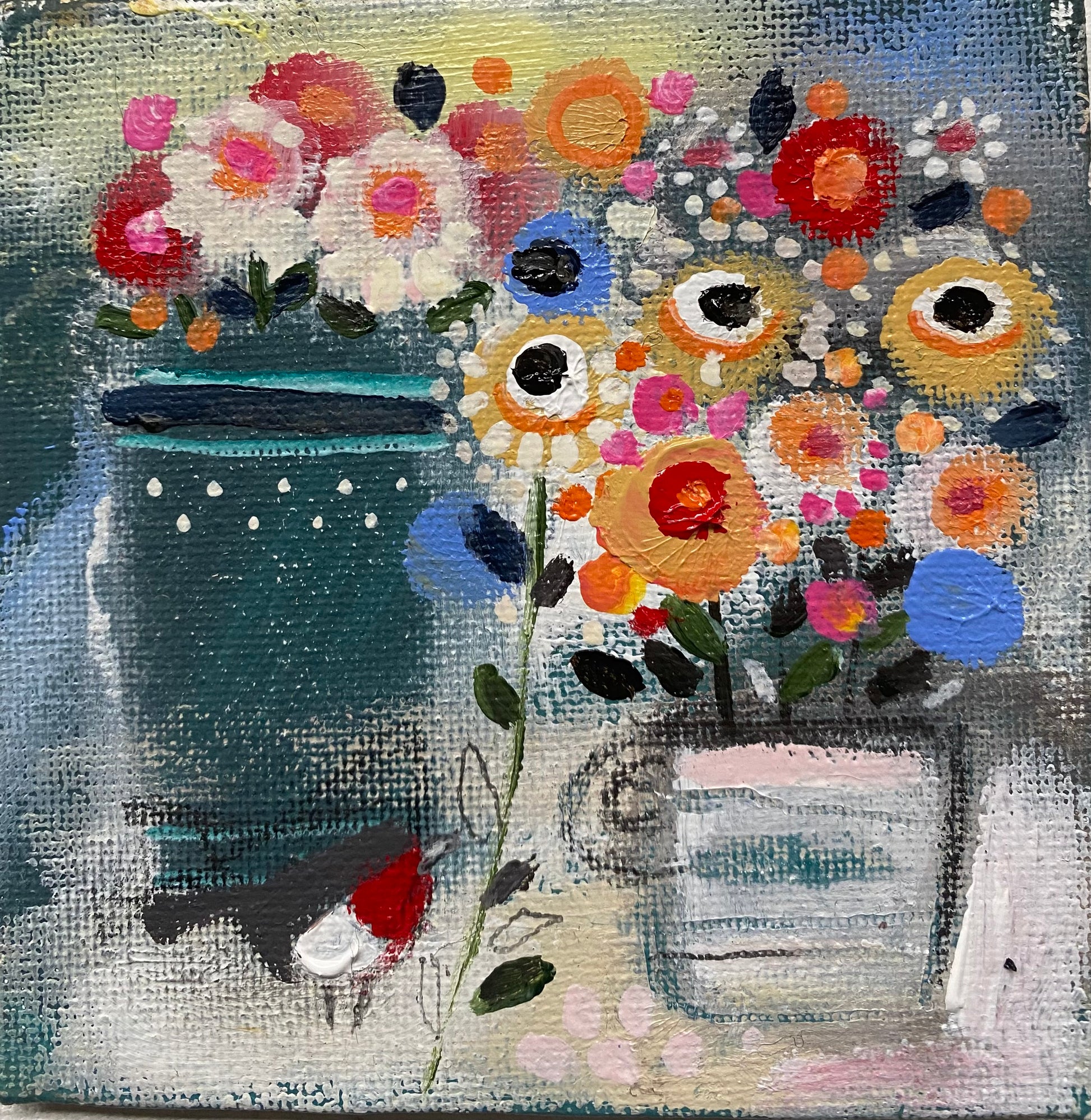 10cm x 10cm acrylic on canvas board in a bespoke wooden frame