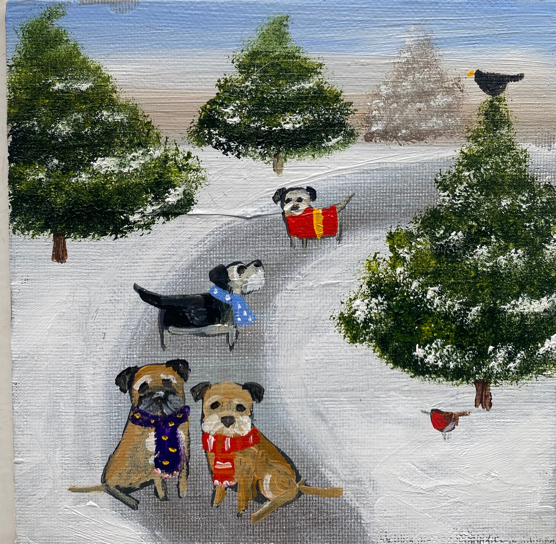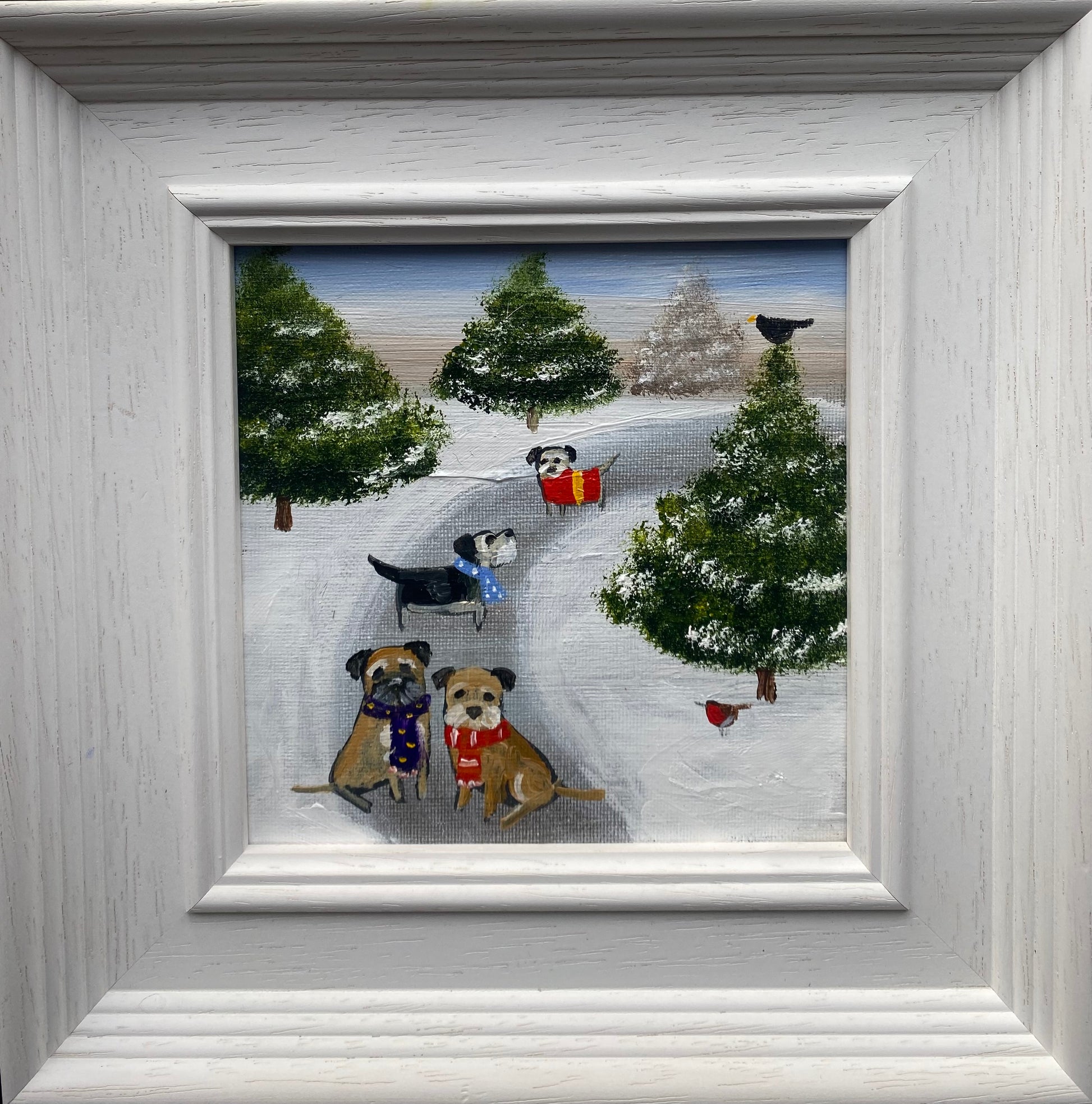 15cm x 15cm acrylic on canvas board in a bespoke wooden frame