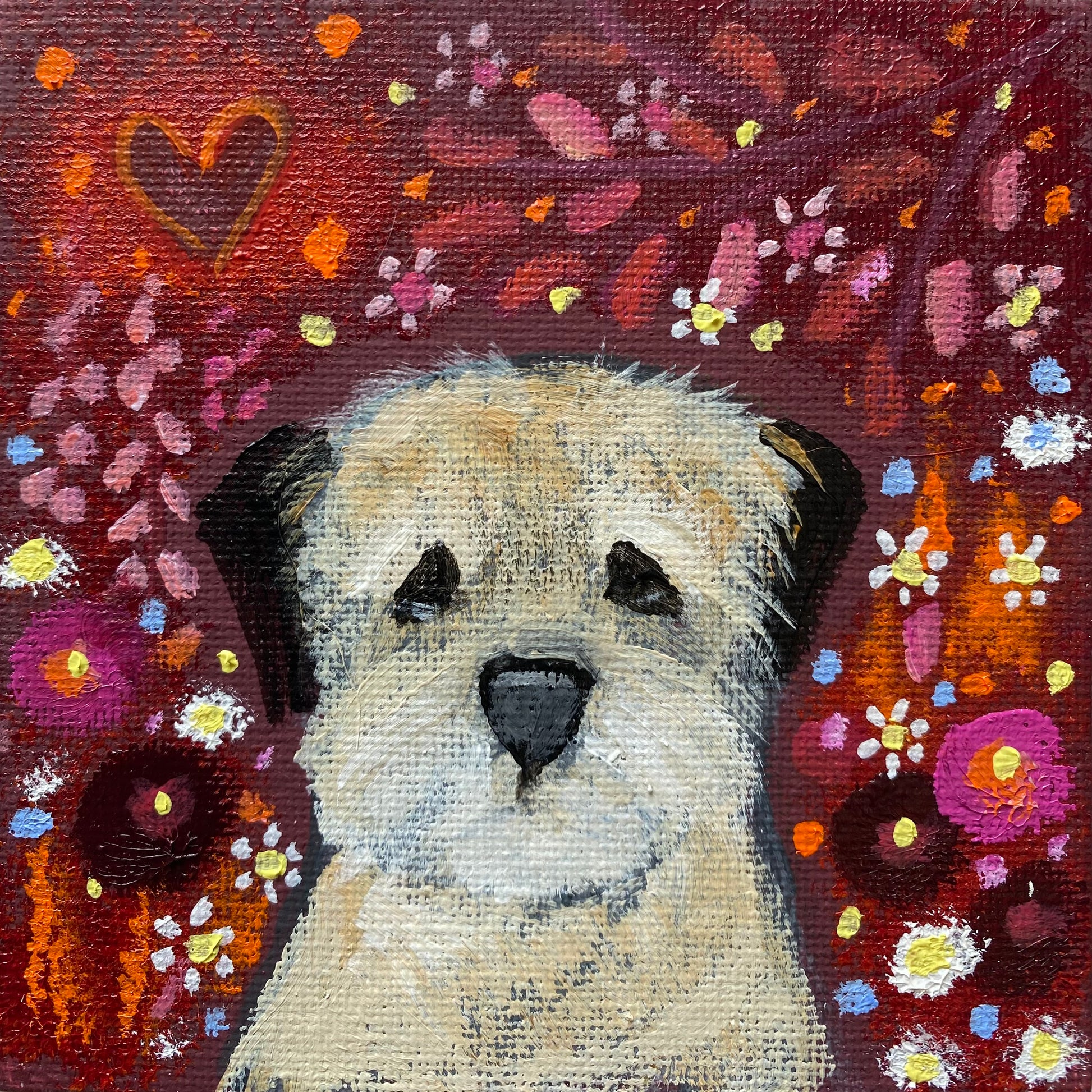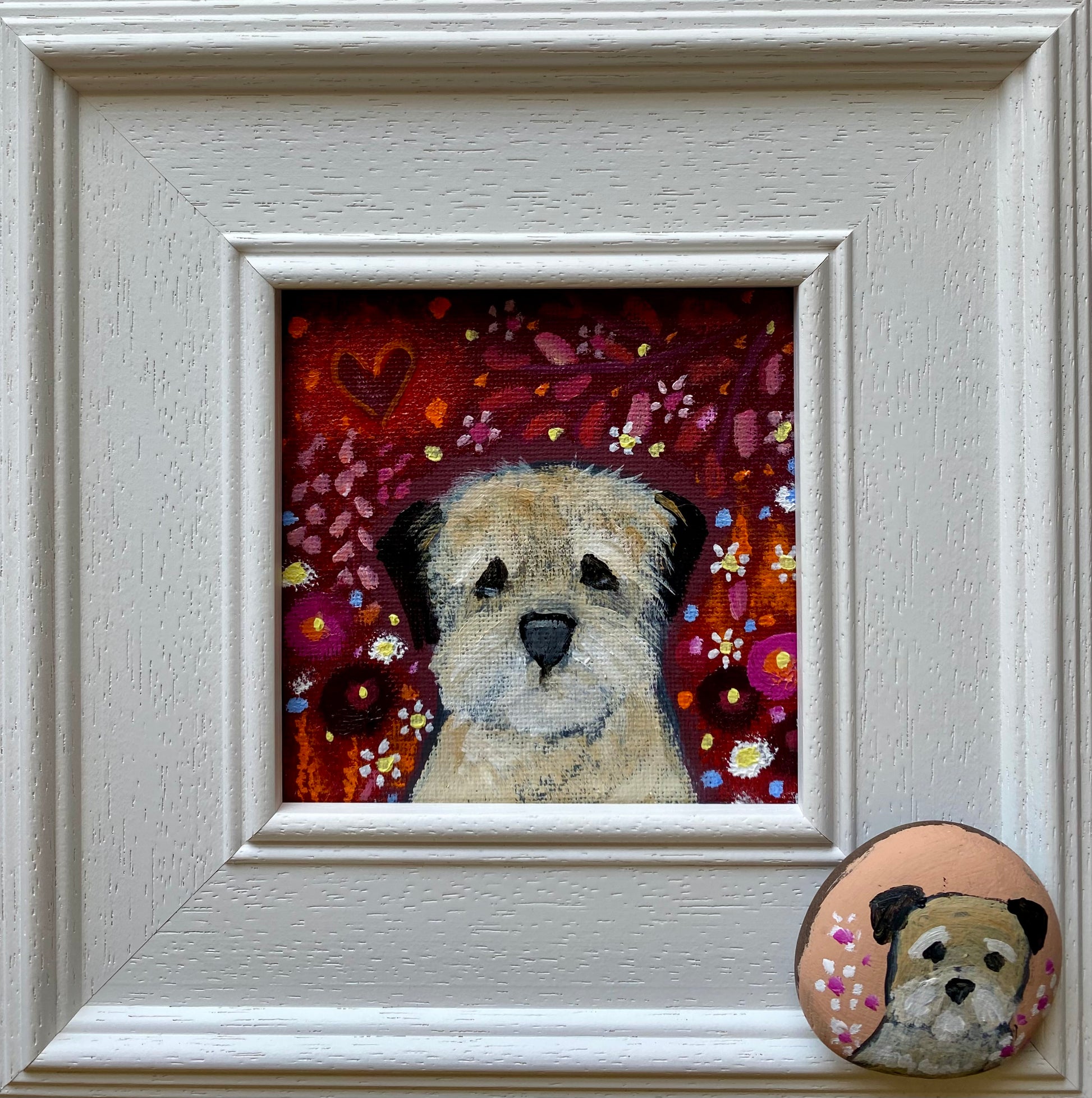 10cm x 10cm acrylic on canvas board in a bespoke wooden frame.