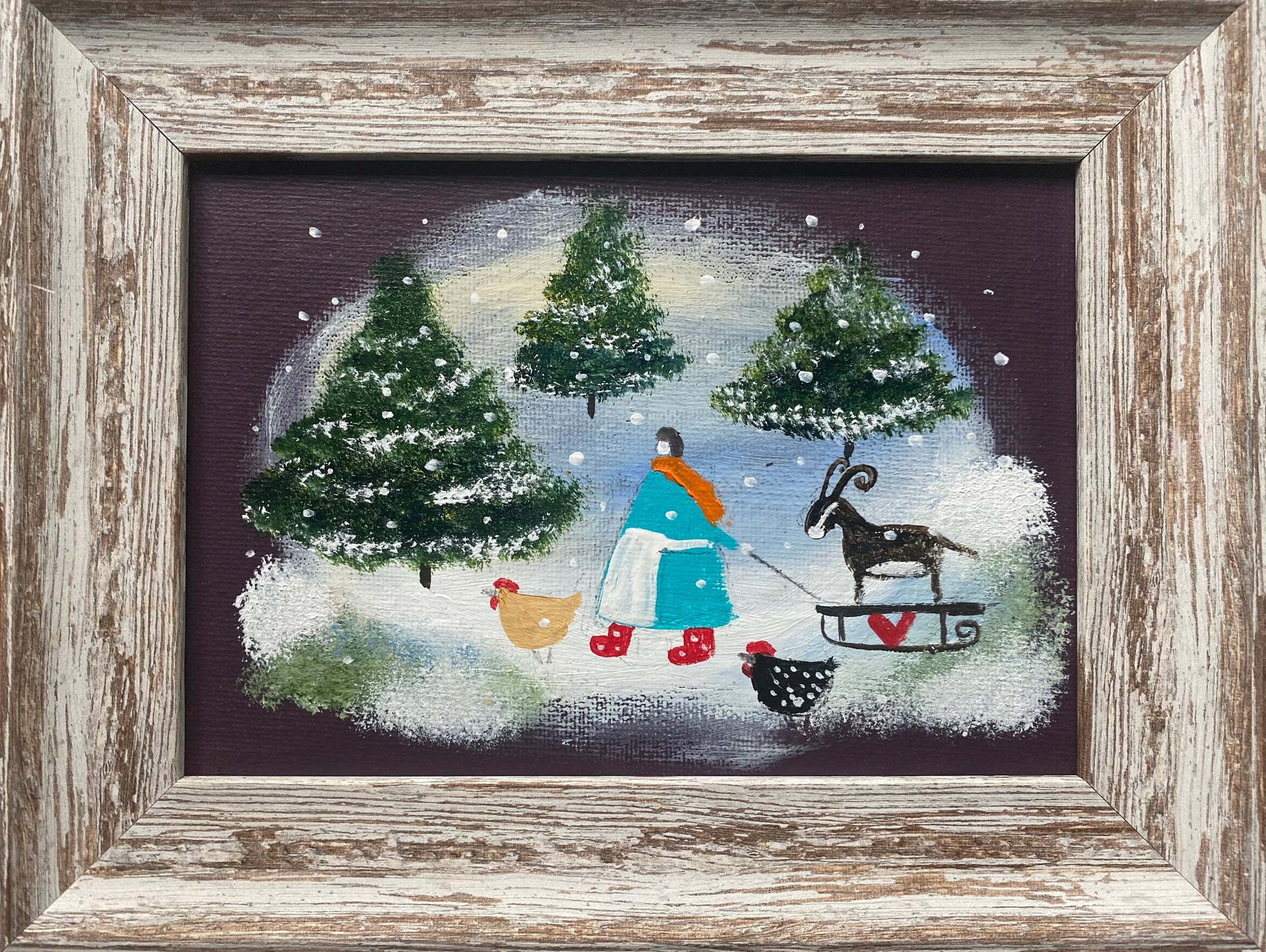 5” x 7” acrylic and emulsion on canvas board in a bespoke, rustic frame