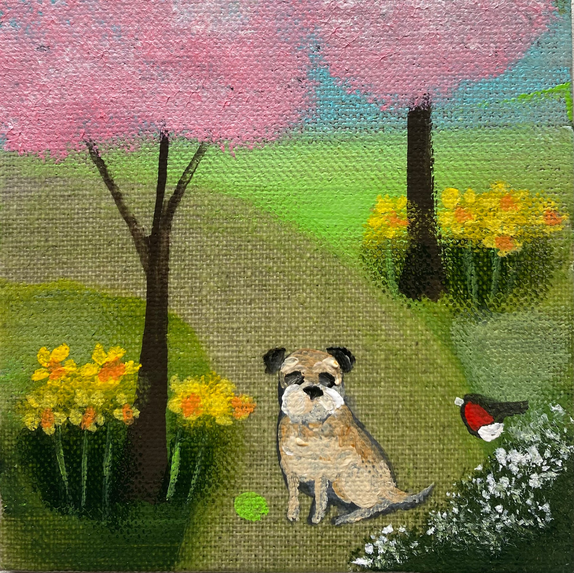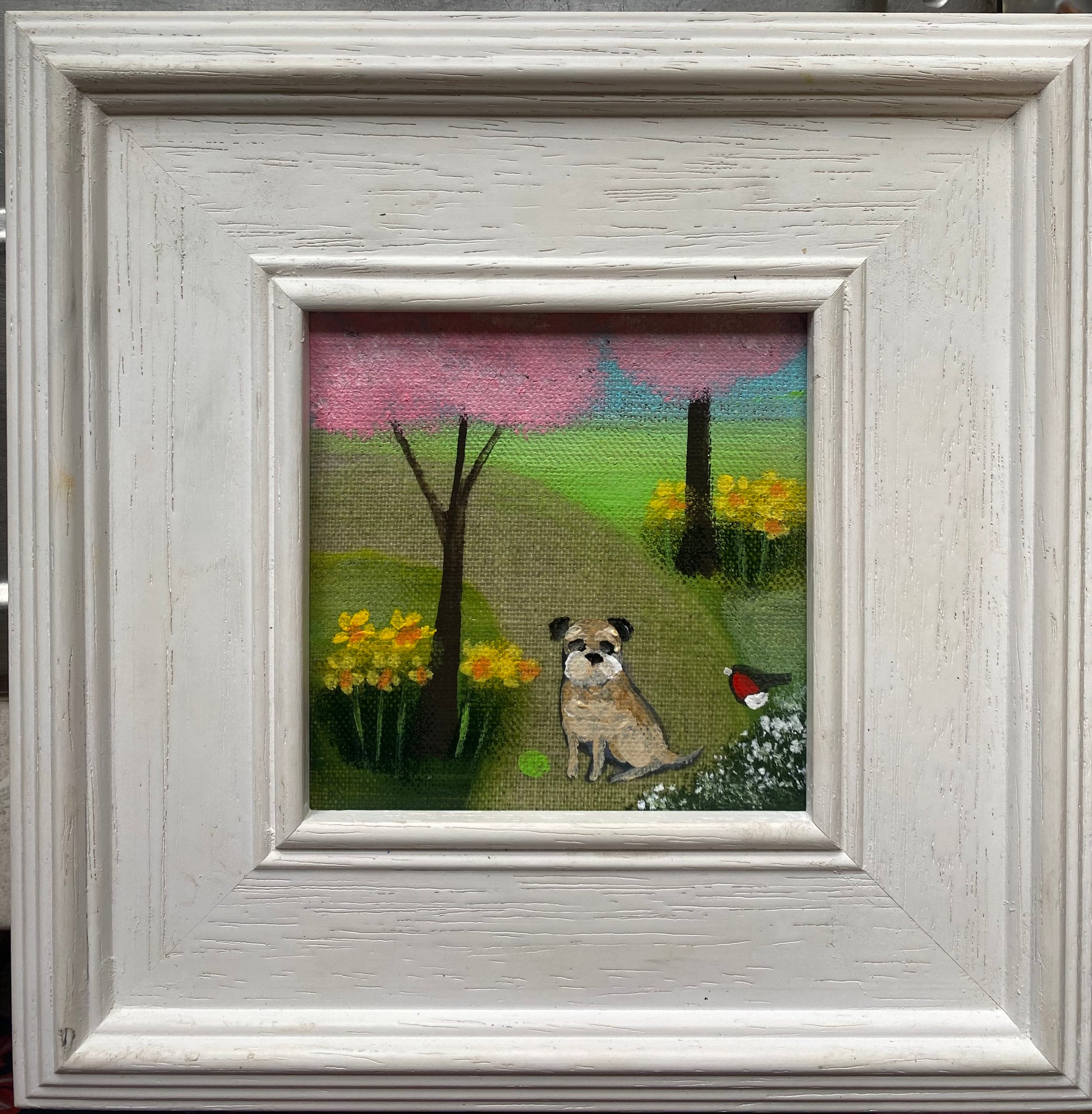 10cm x 10cm acrylic on linen board in a bespoke wooden frame.