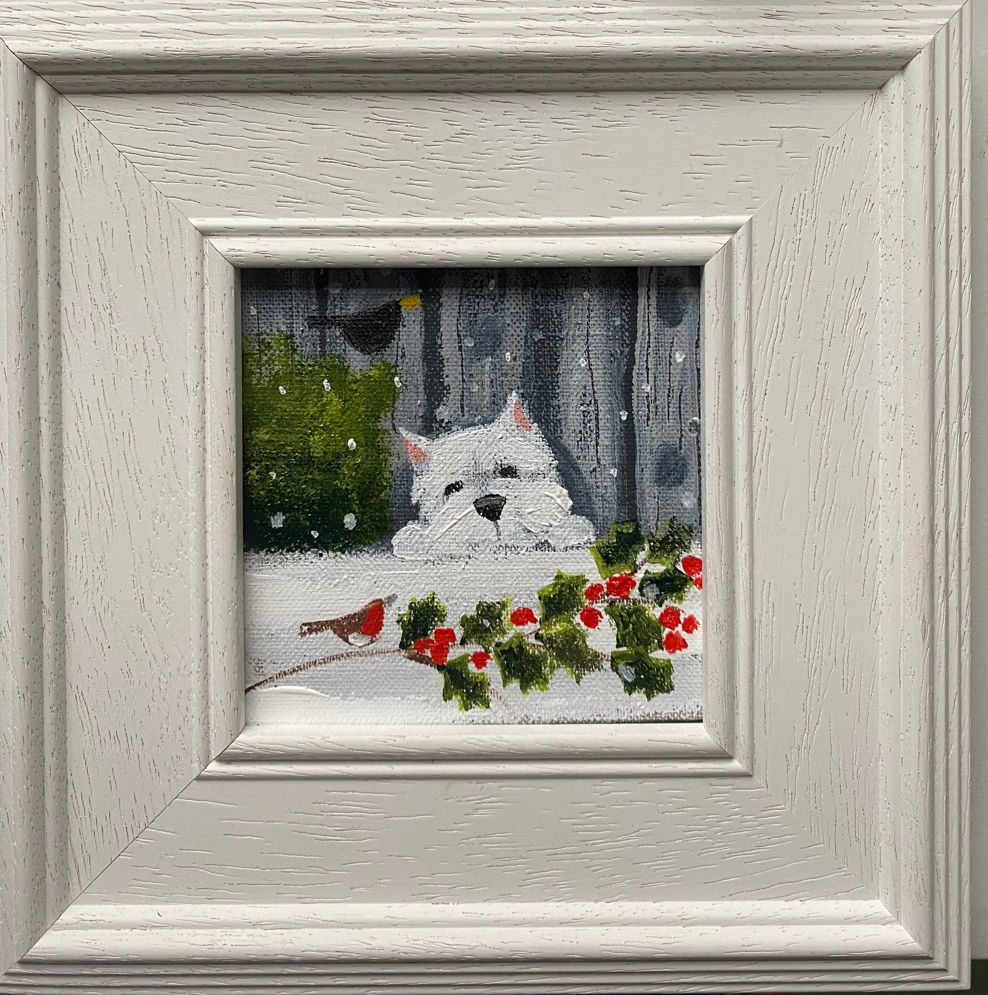 10cm x 10cm acrylic on linen board in a bespoke wooden frame