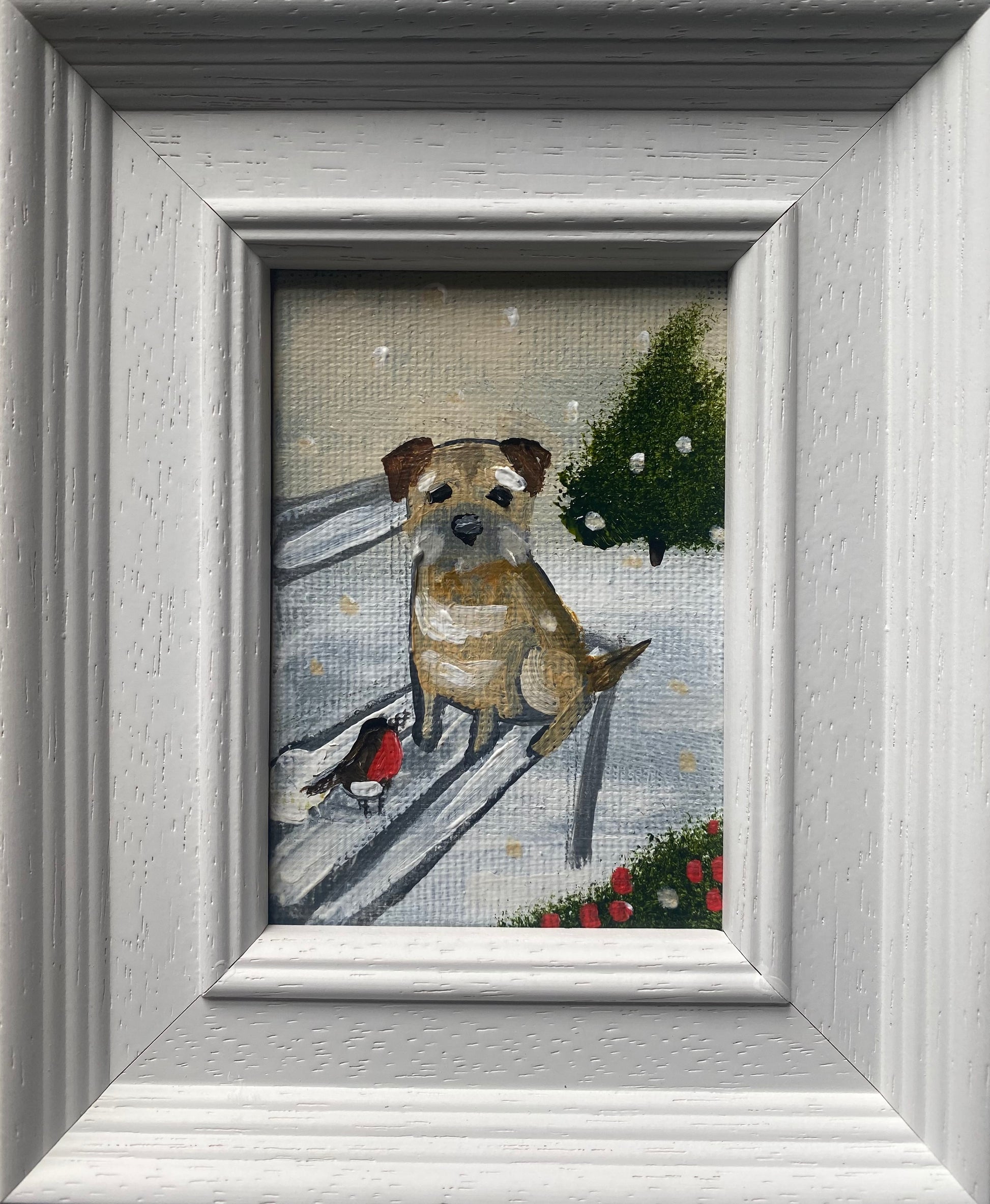 2.5” x 3.5” mini canvas board in a bespoke wooden frame.