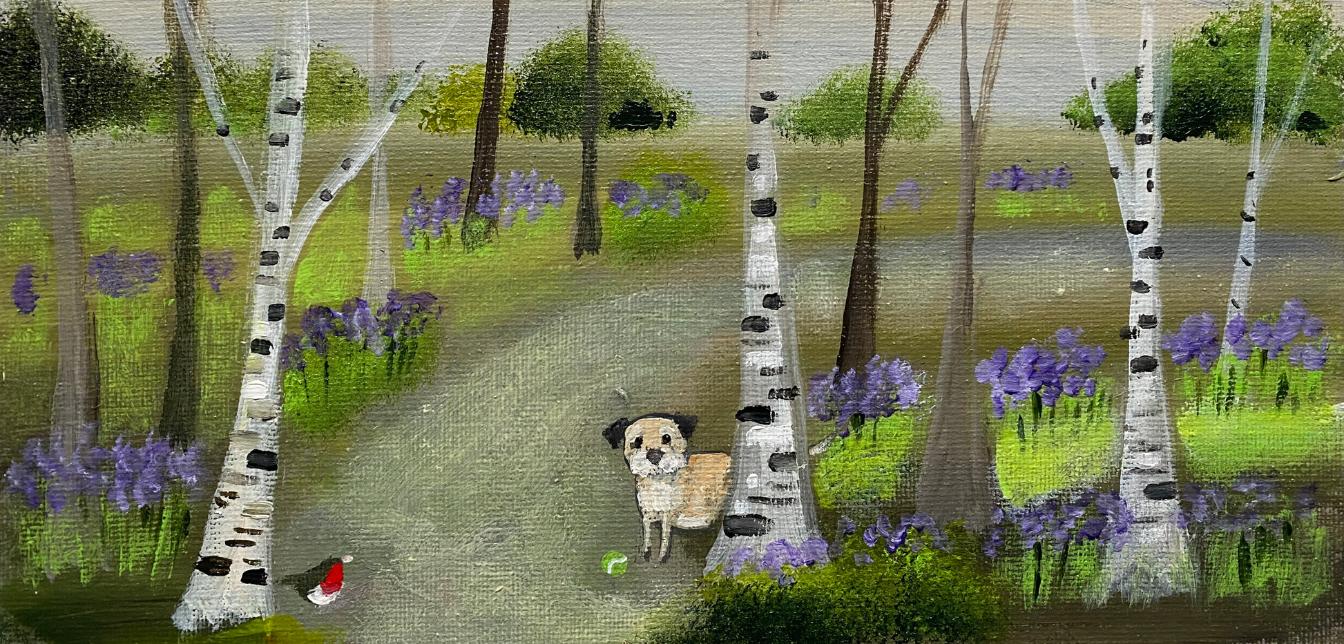 10” x 5” acrylic on canvas board in a bespoke wooden frame.