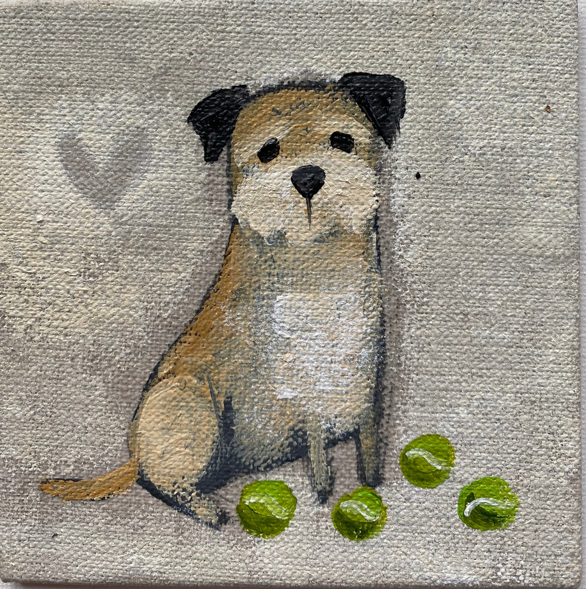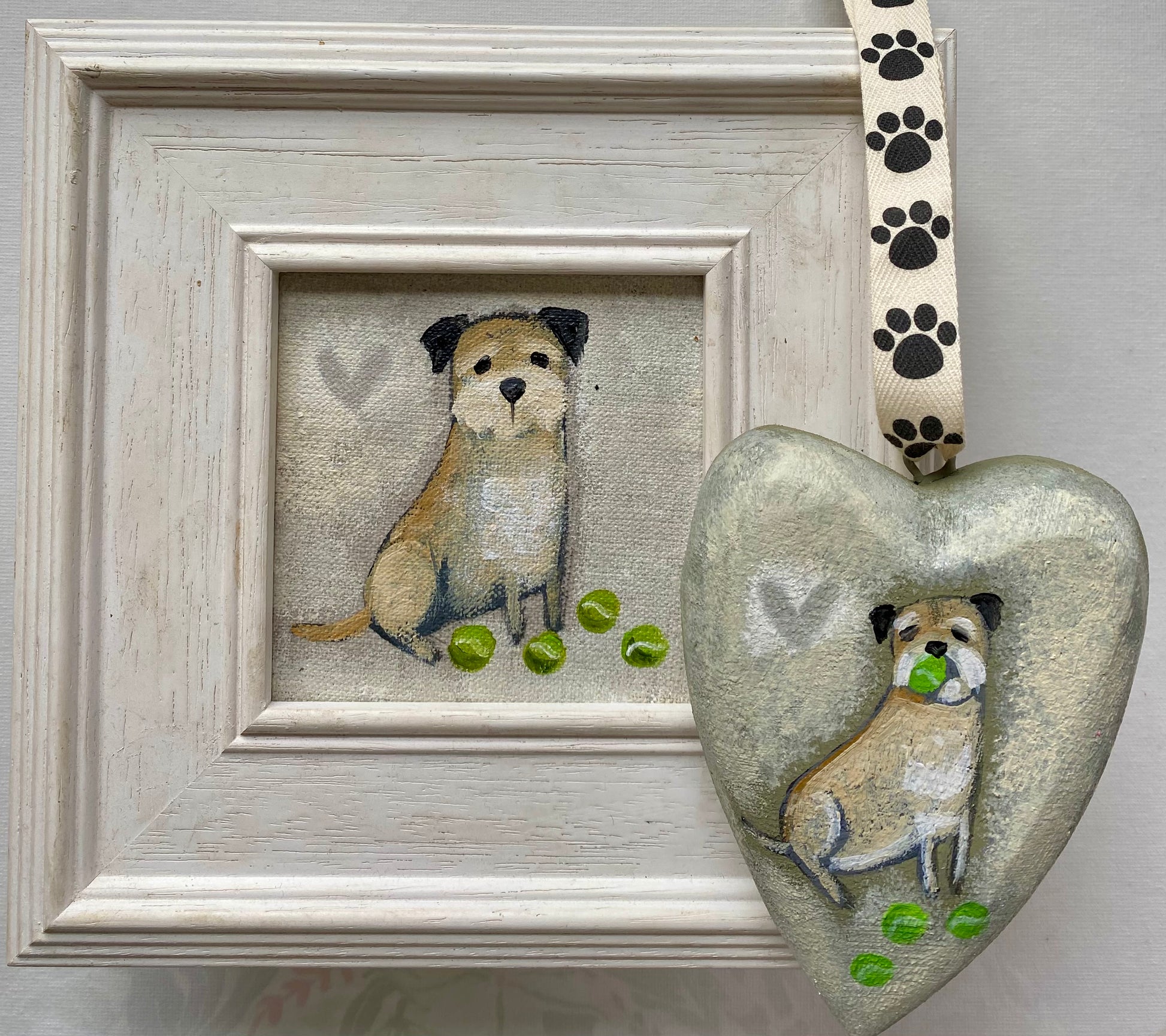 10cm x 10cm acrylic on canvas board in a bespoke wooden frame plus a 12cm deep chunky wooden hanger.
