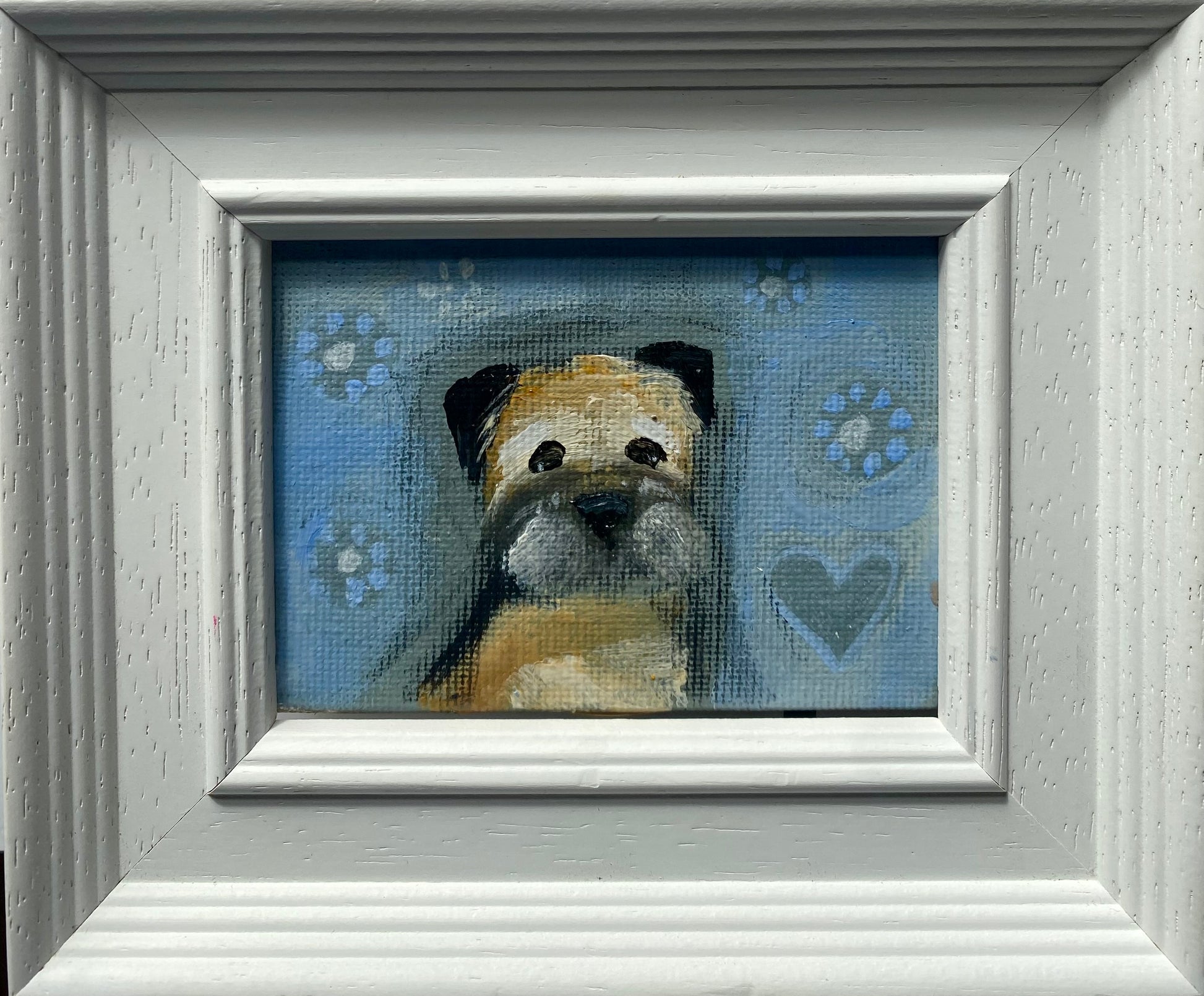2.5” x 3.5” mini canvas board in a bespoke wooden frame.