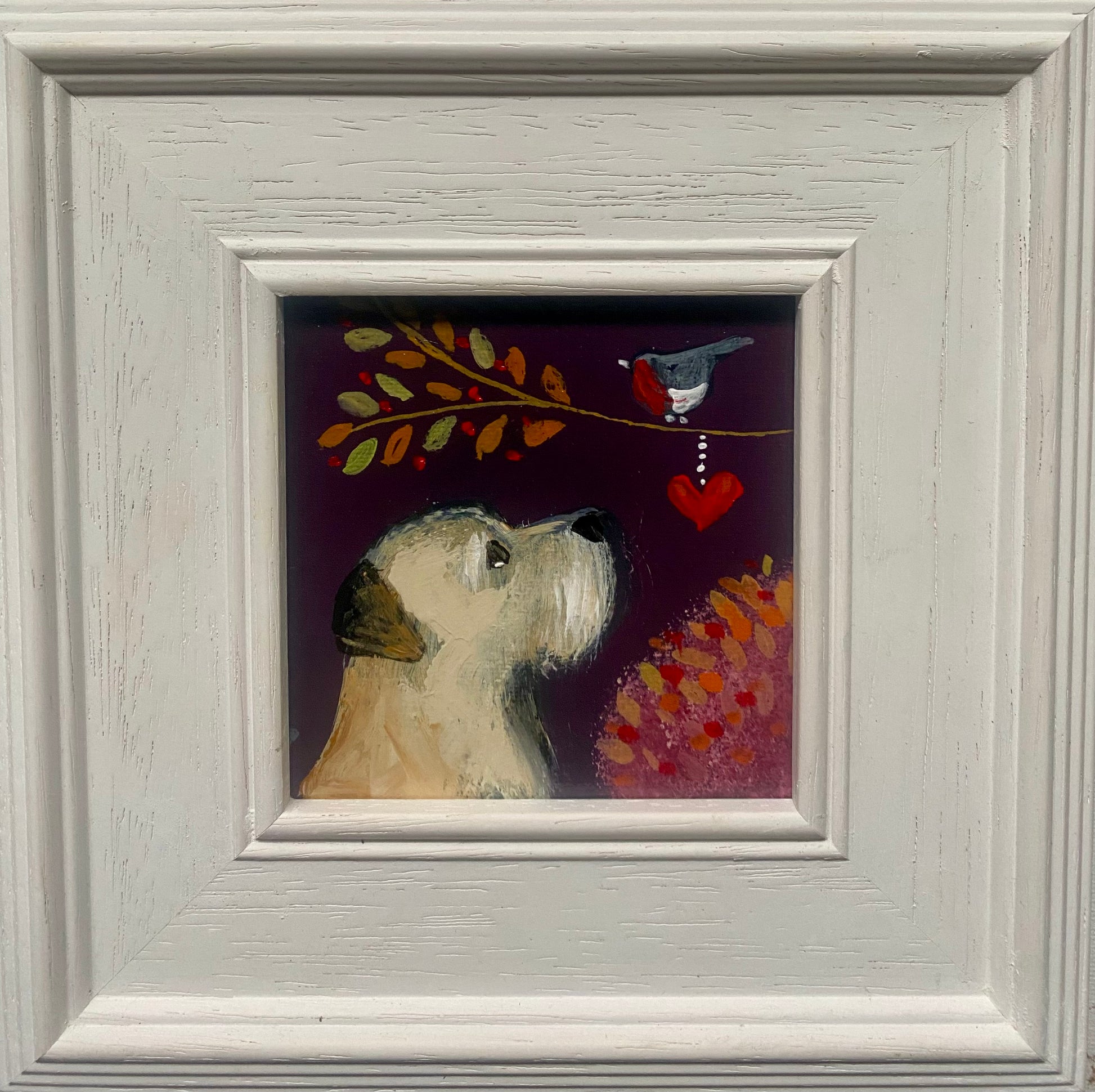 10cm x 10cm acrylic and emulsion on canvas in a bespoke wooden frame