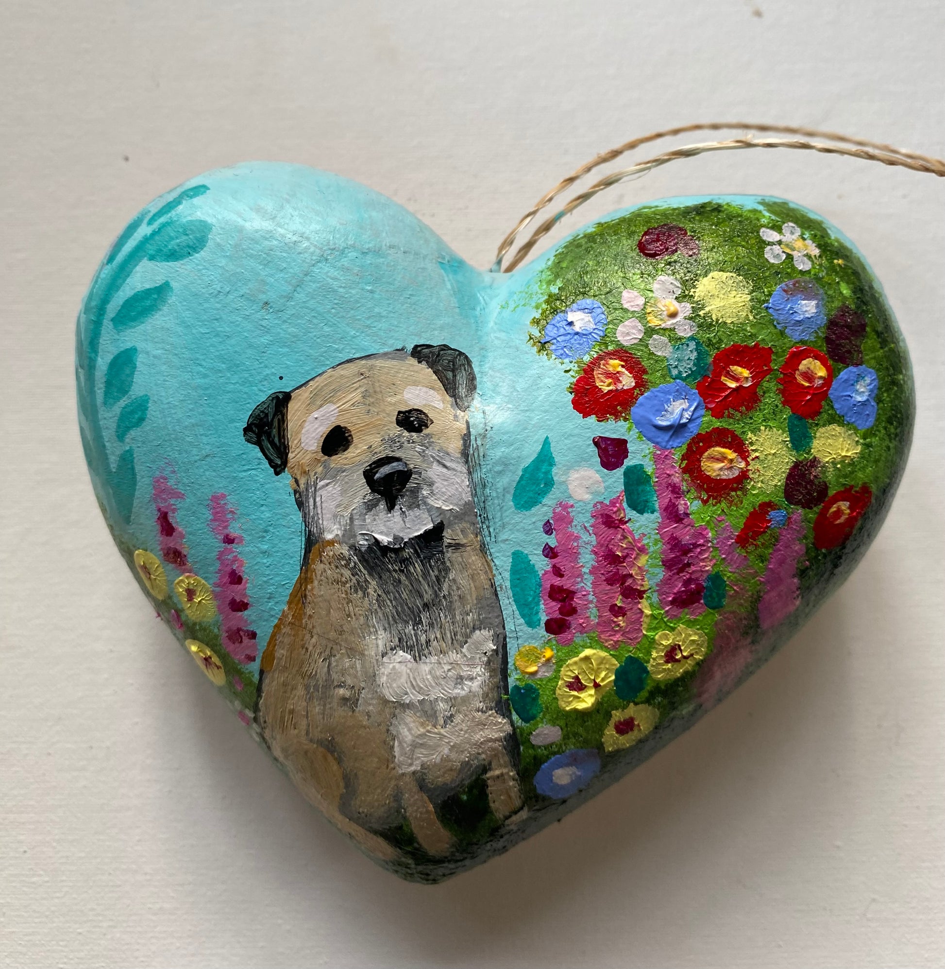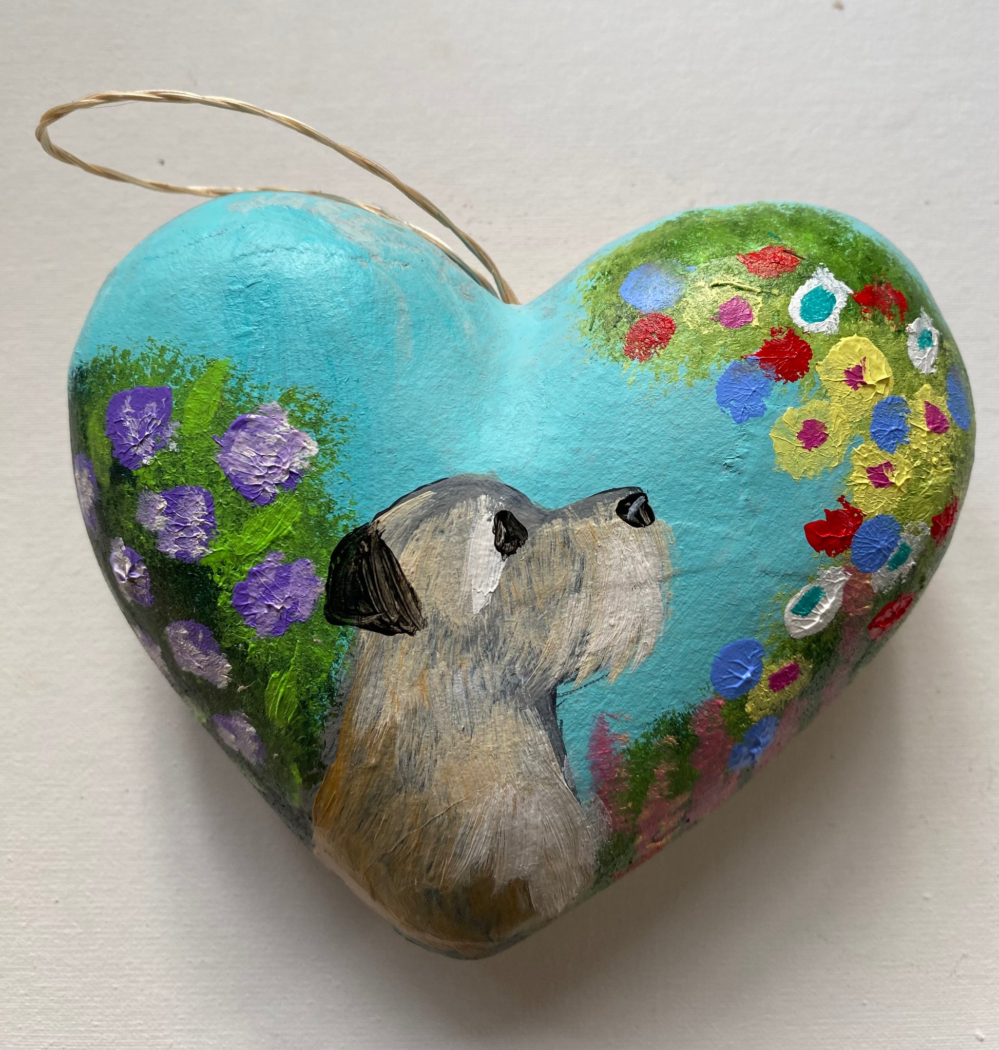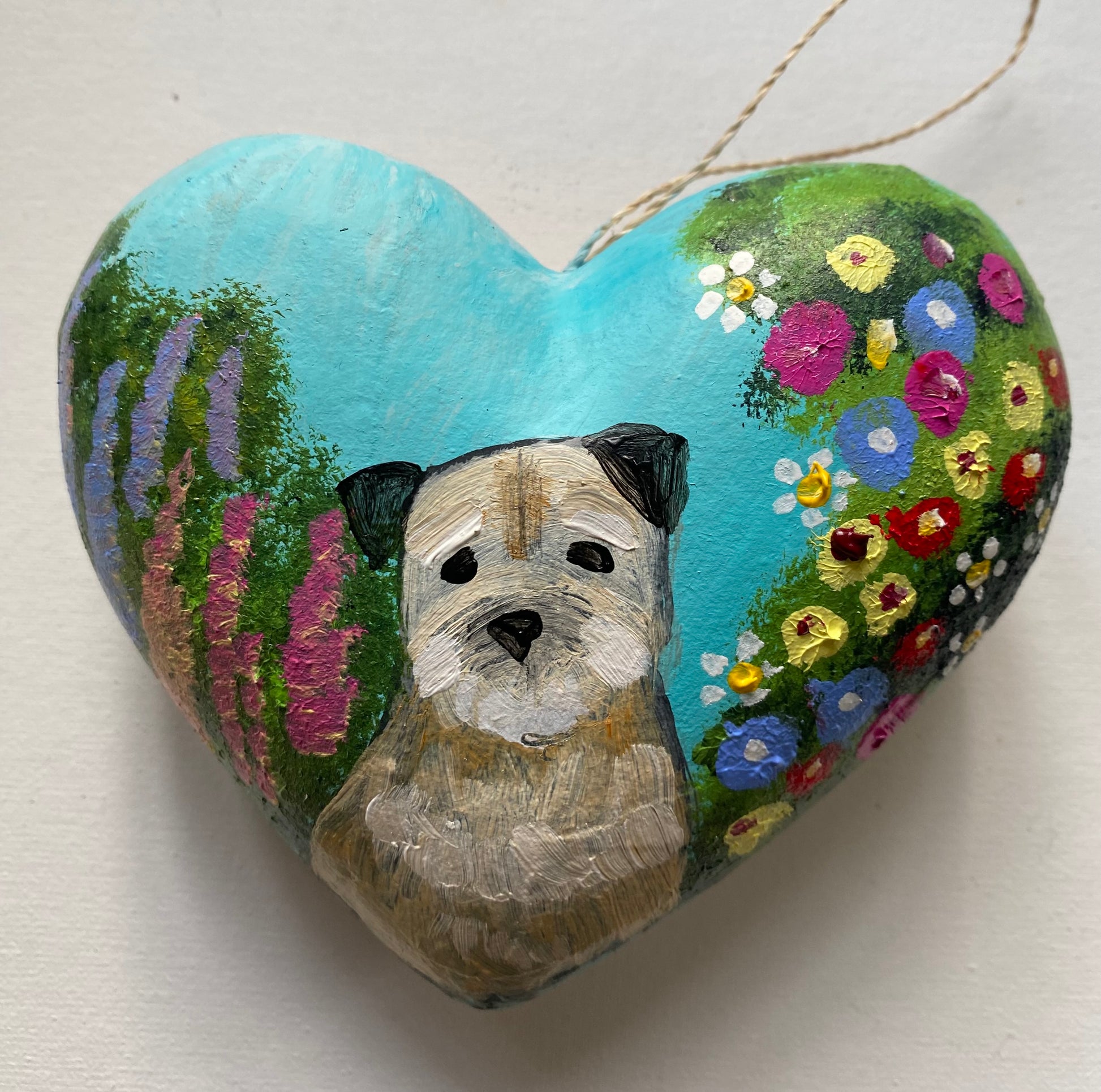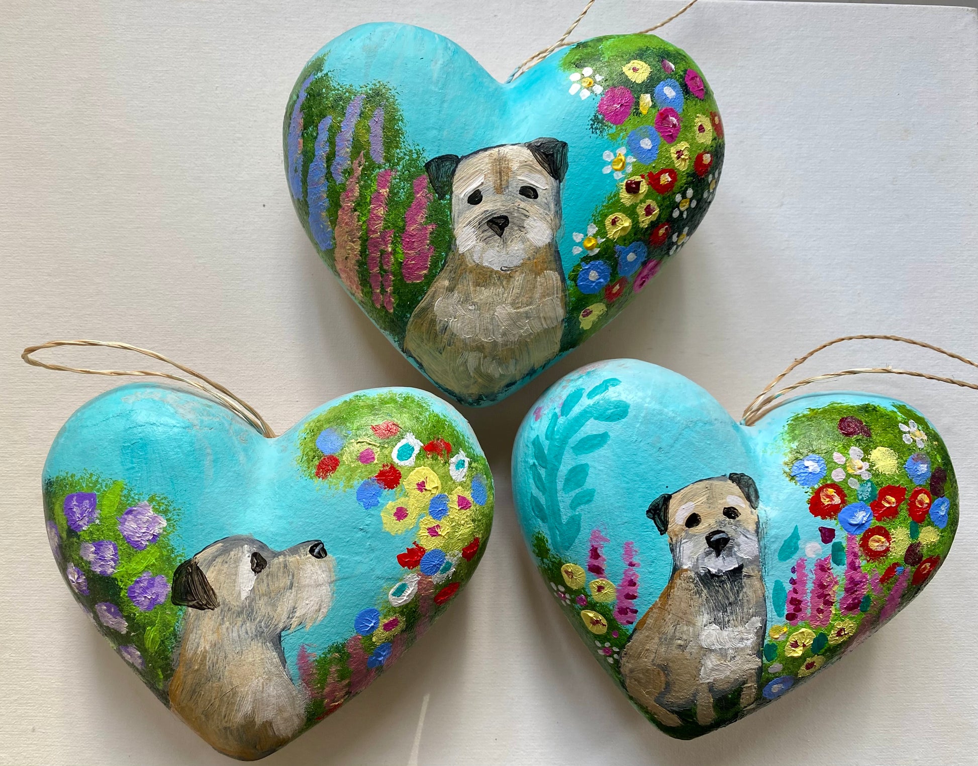 A set of three handpainted, signed and varnished chunky mache baubles