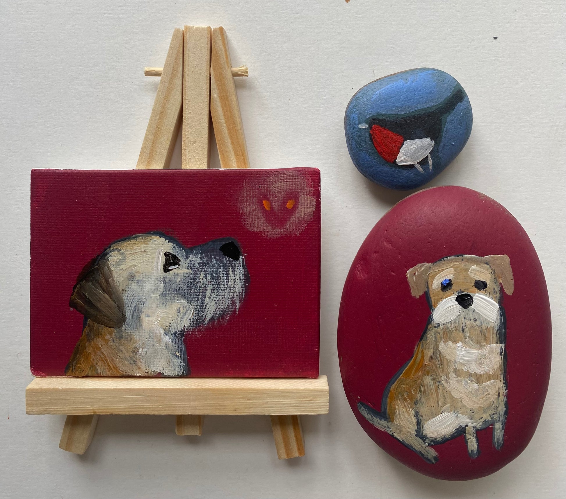 Make your own little mantelpiece display with this 2.5” x 3.6” mini canvas board and easel plus two handpainted stones