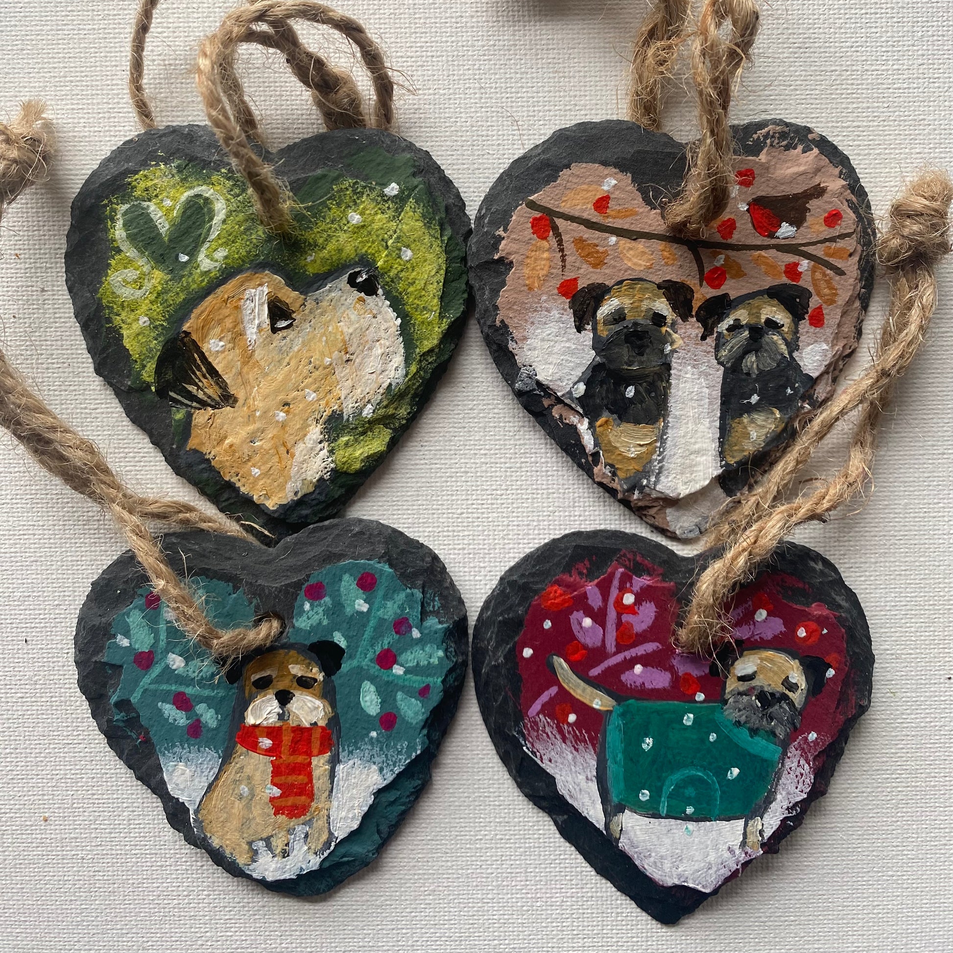 Four 7cm wide handpainted slate hangers