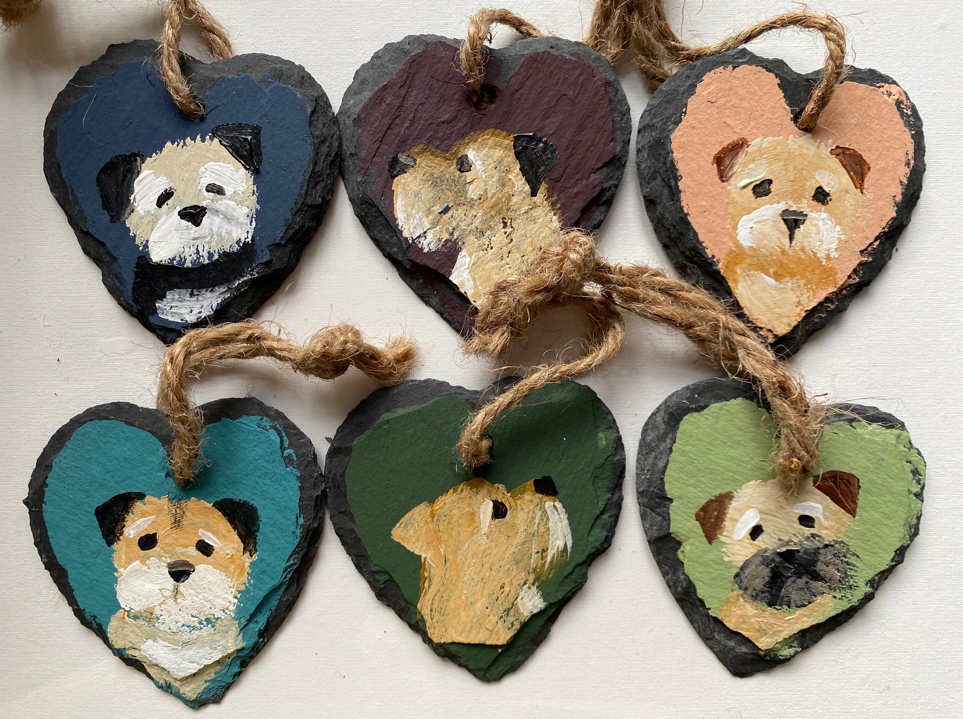 A set of six, 7cm wide handpainted slate hangers