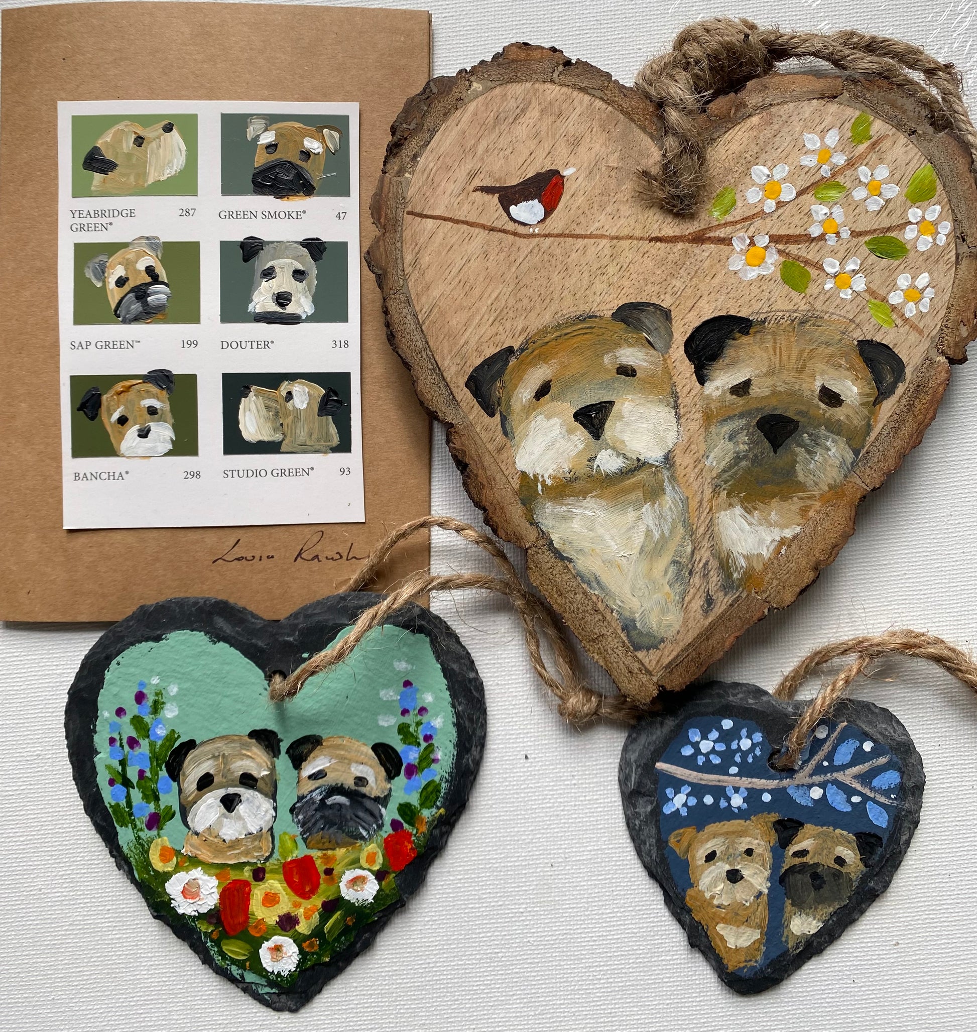 Border bundle consisting of a 14cm wide wooden hanger, 9cm wide slate hanger and a 7cm wide slate hanger plus a handpainted card with envelope