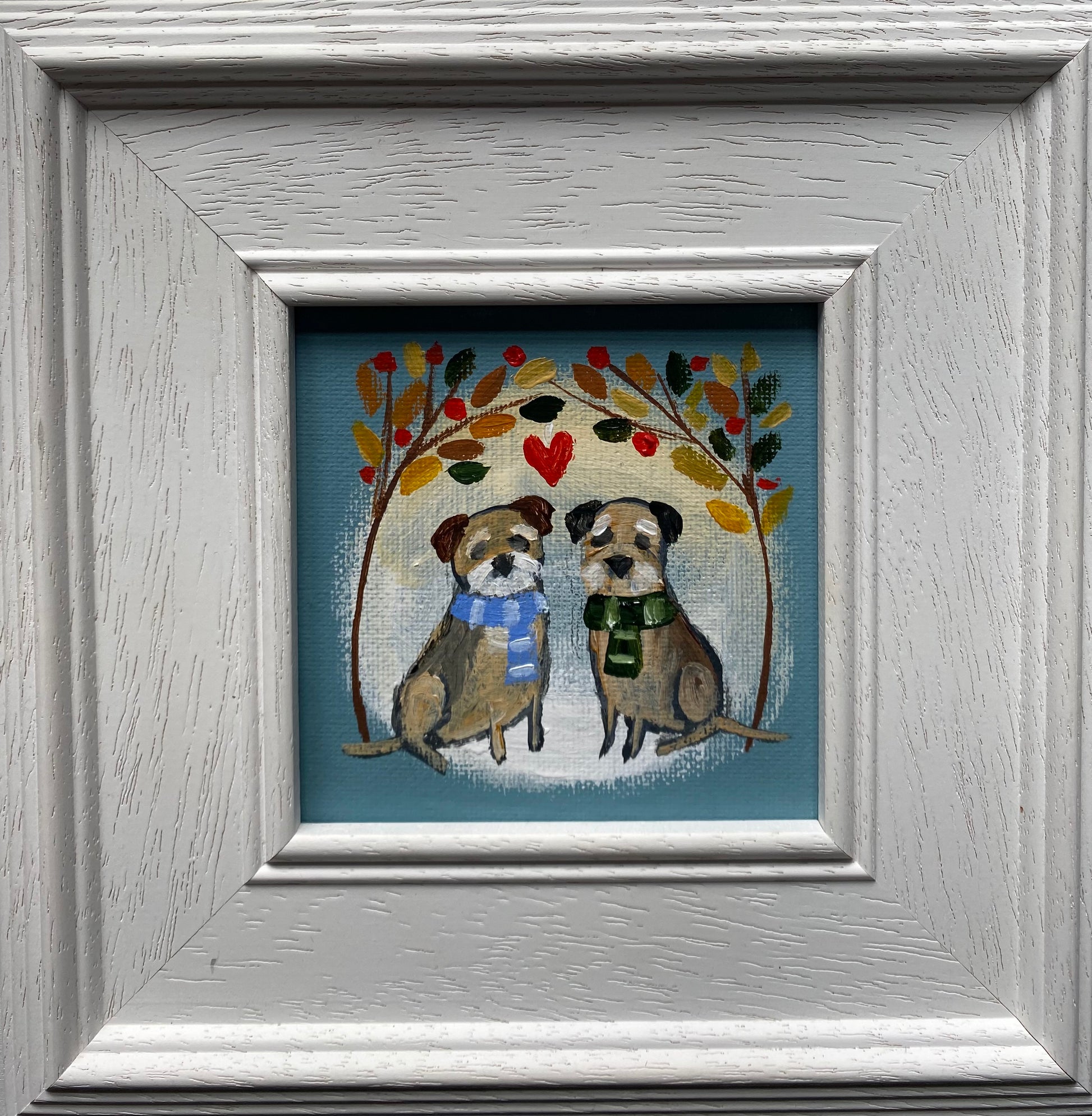 10cm x 10cm acrylic and emulsion on canvas board bin a bespoke wooden frame