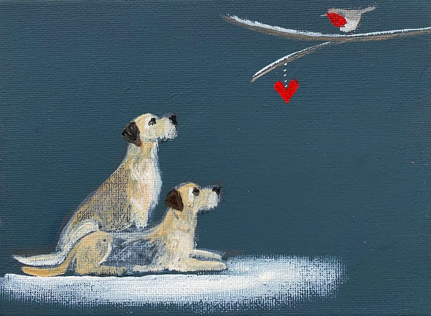 5" x 7" acrylic and emulsion on canvas board. Background shade is Farrow & Ball 'Hague Blue'