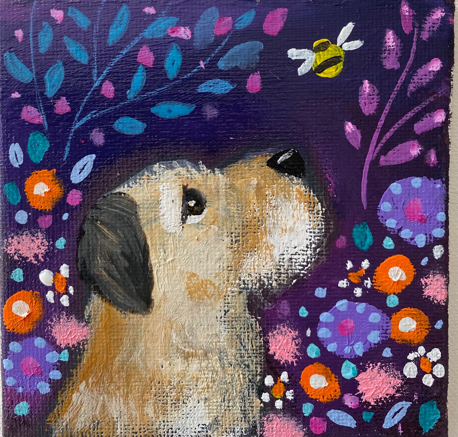 10cm x 10cm acrylic on canvas board in a bespoke wooden frame