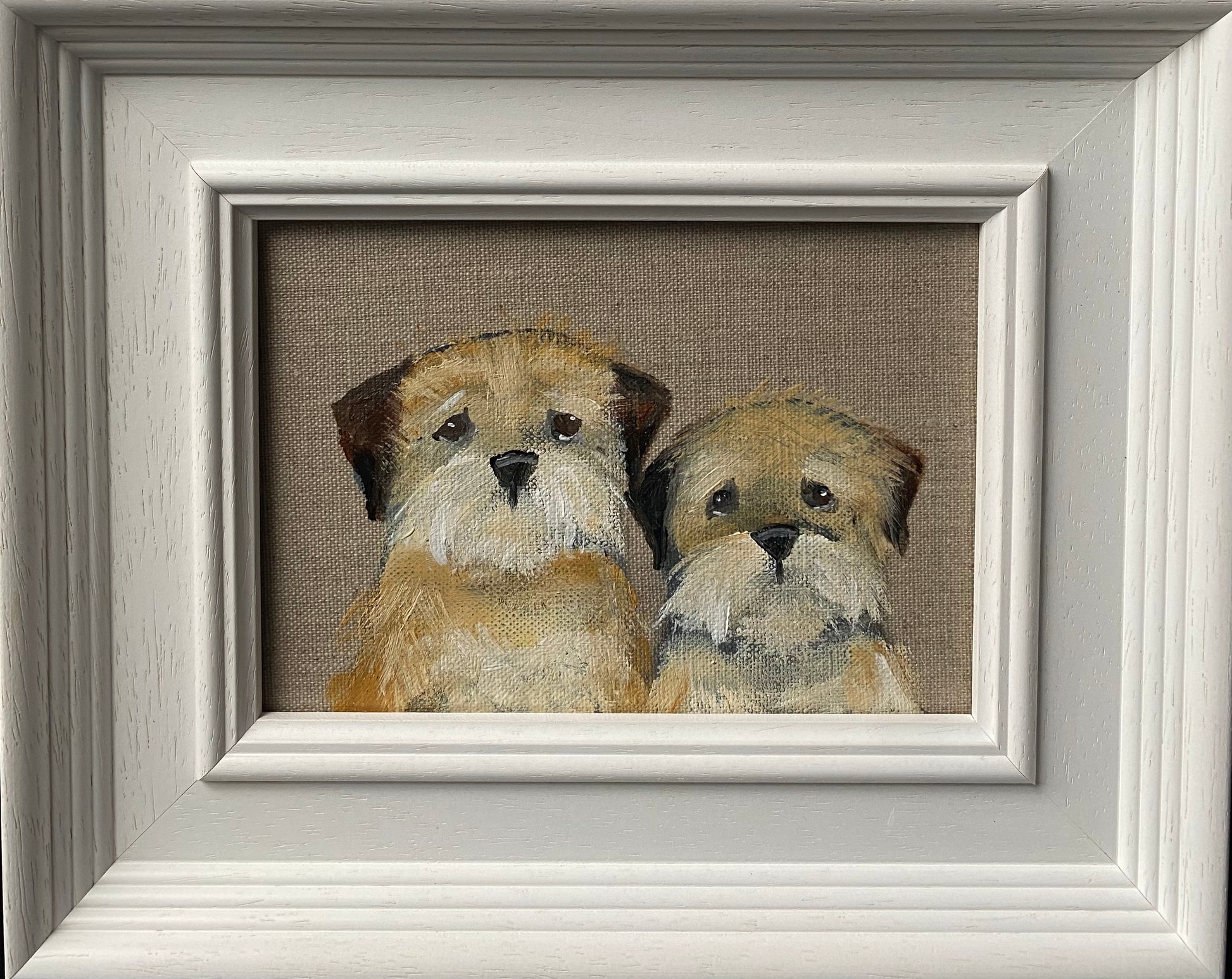 5” x 7” acrylic on linen board in a bespoke wooden frame.