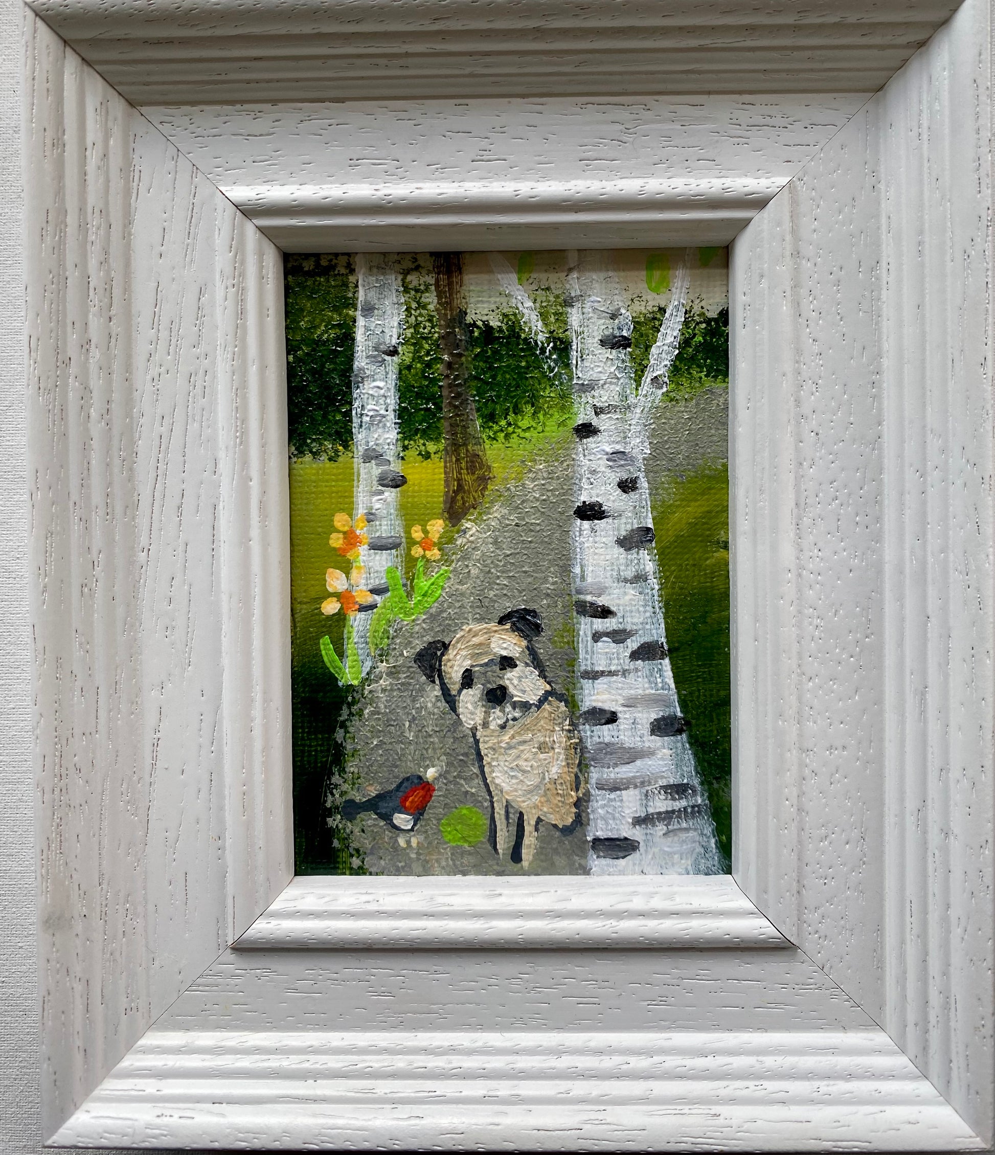 2.5” x 3.5” mini canvas board original in a bespoke wooden frame