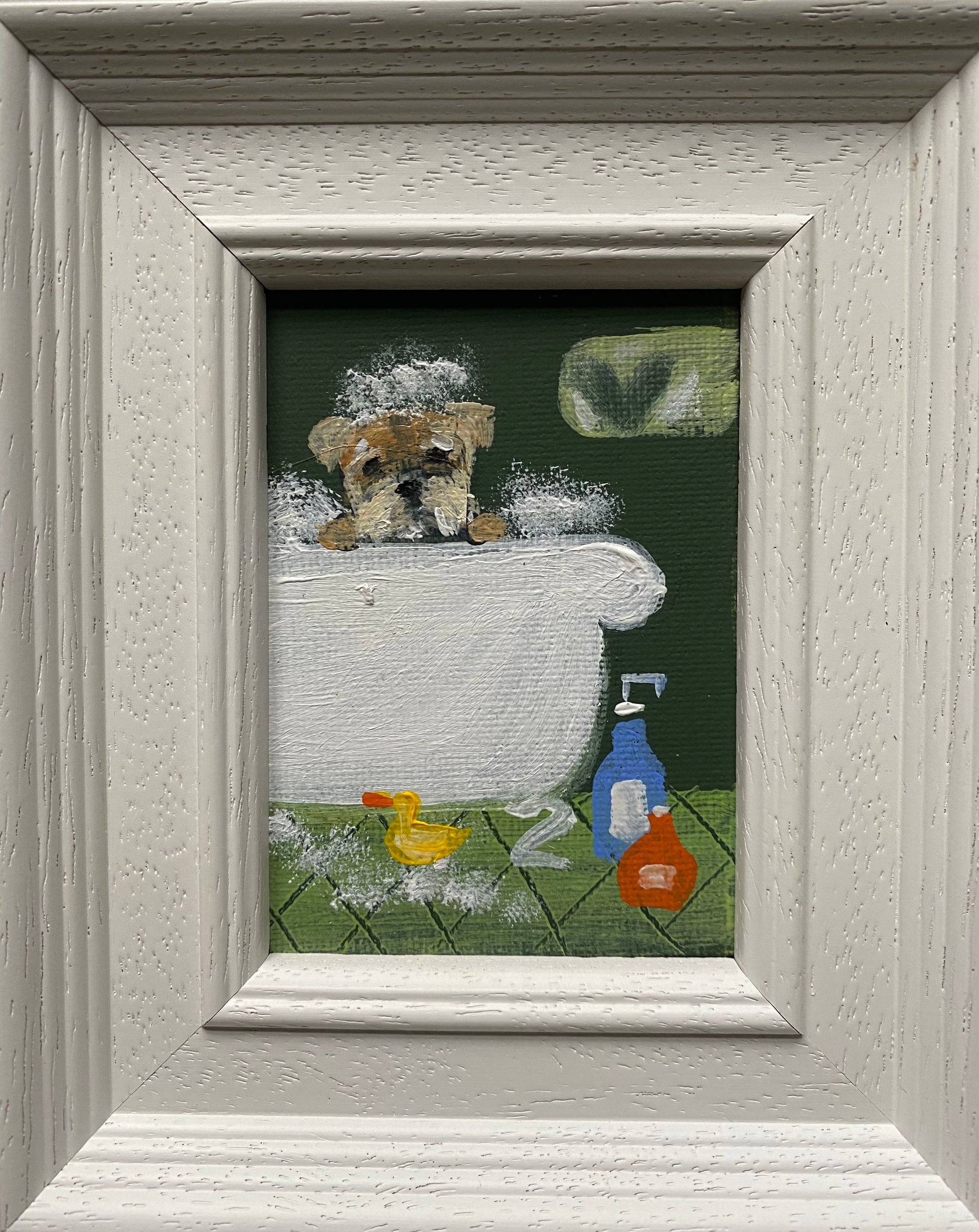 2.5” x 3.5” mini canvas board original in a bespoke wooden frame