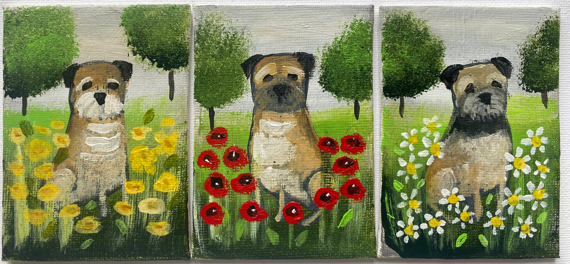 A set of three 2.5” x 3.5” mini boards. All in bespoke frames and signed on reverse