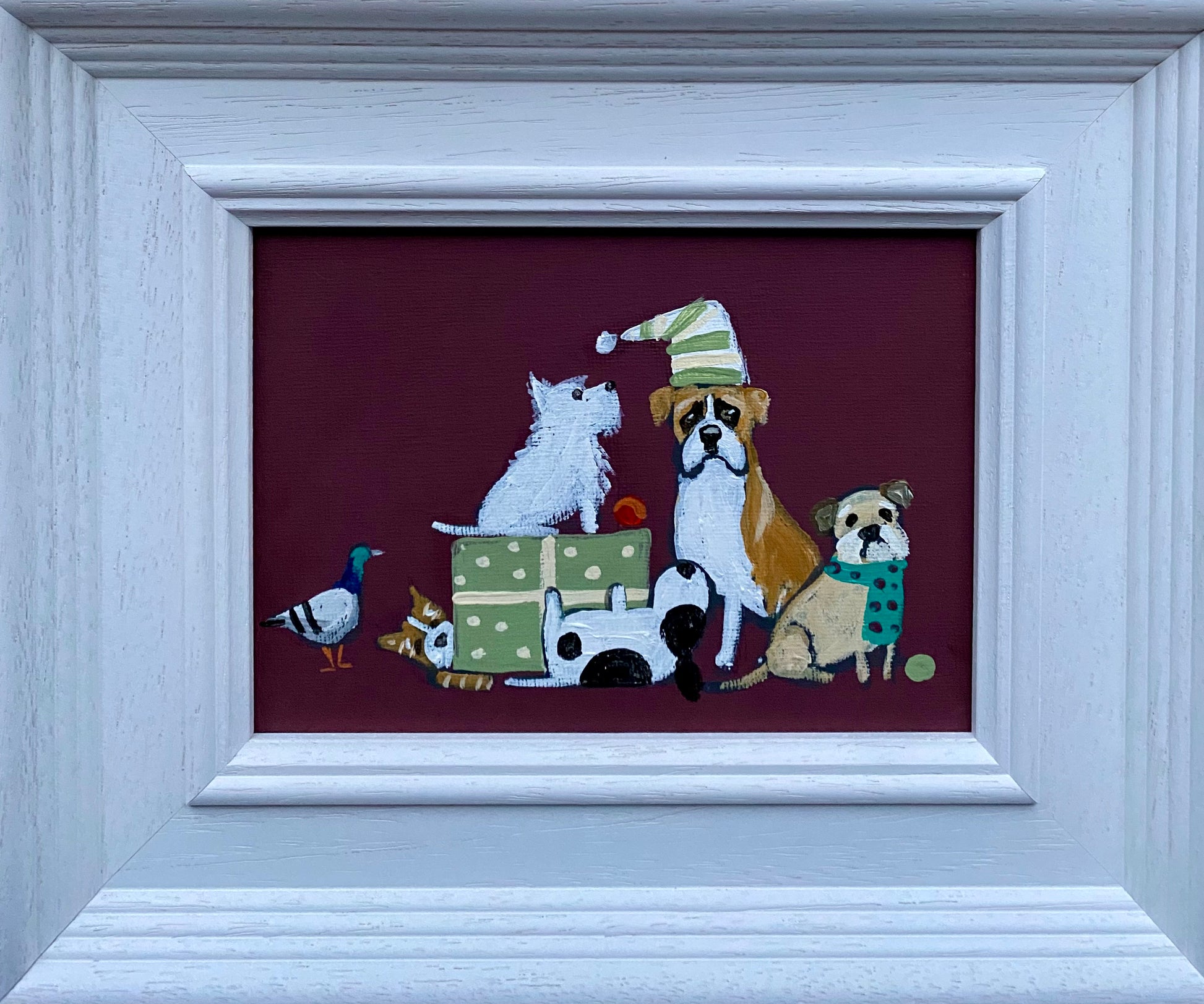 5” x 7” acrylic and emulsion on canvas board in a bespoke wooden frame.