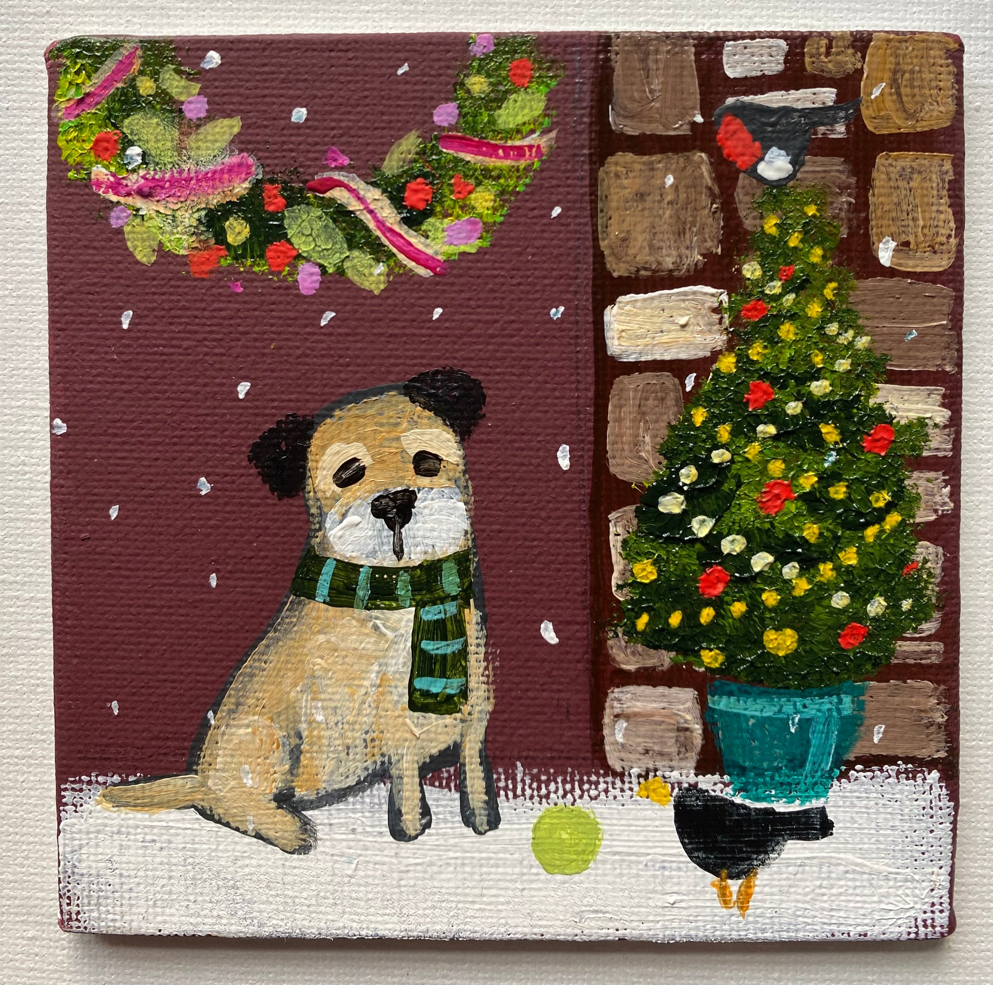 10cm x 10cm acrylic on canvas board in a bespoke wooden frame.