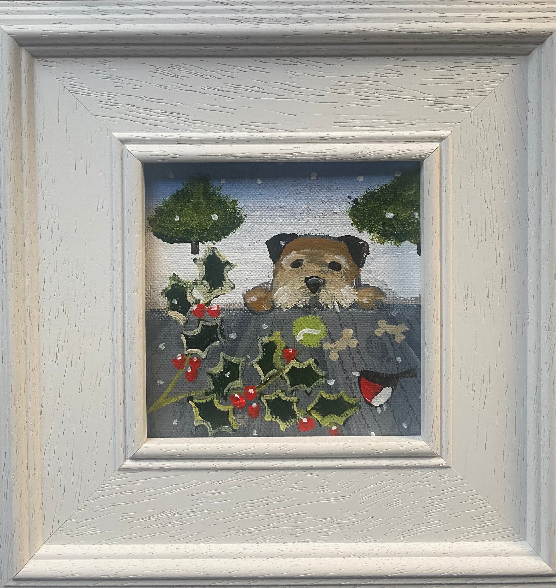 10cm x 10cm acrylic on linen board in a bespoke wooden frame