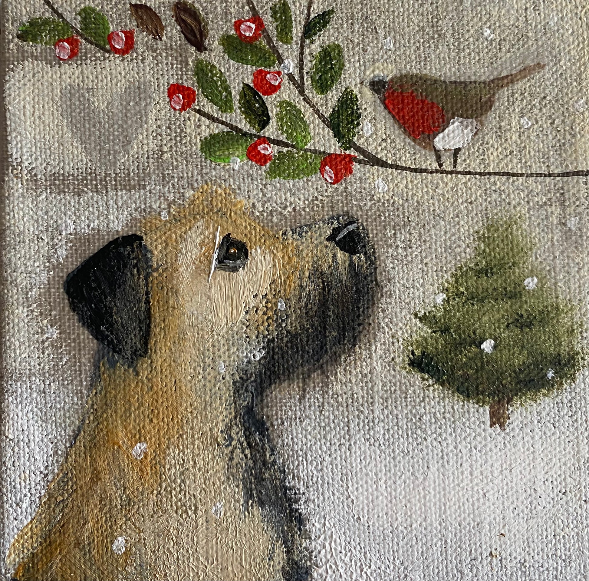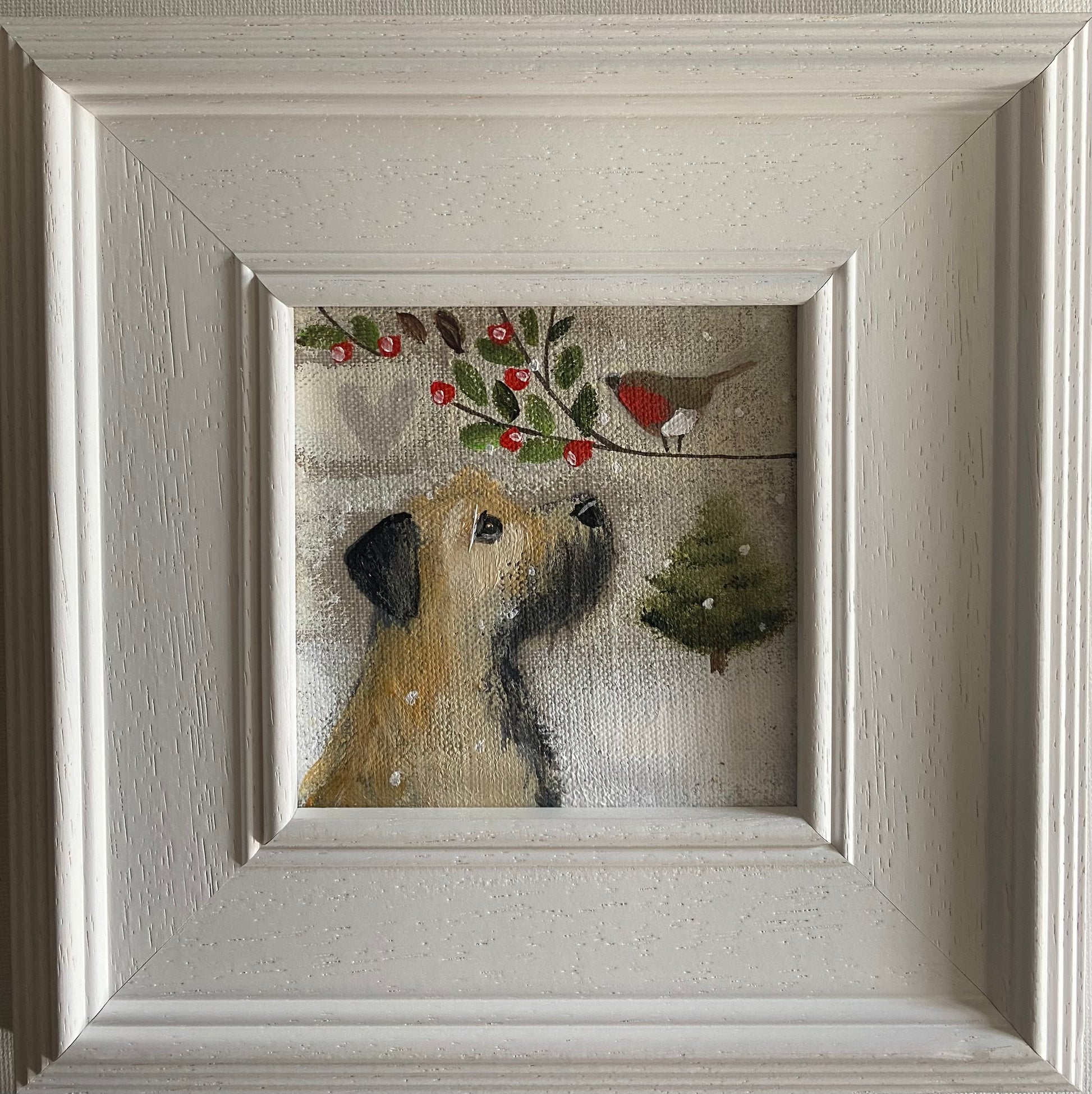 10cm x 10cm acrylic on linen board in a bespoke white wooden frame
