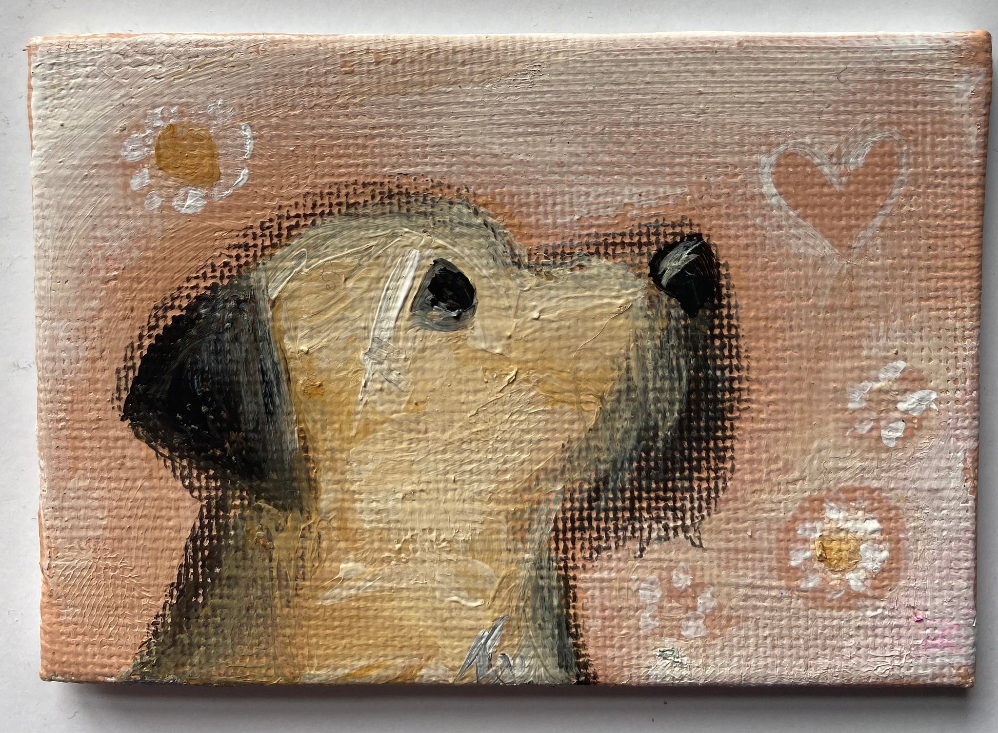 A 2.5” x 3.5” mini canvas board in a bespoke wooden frame.