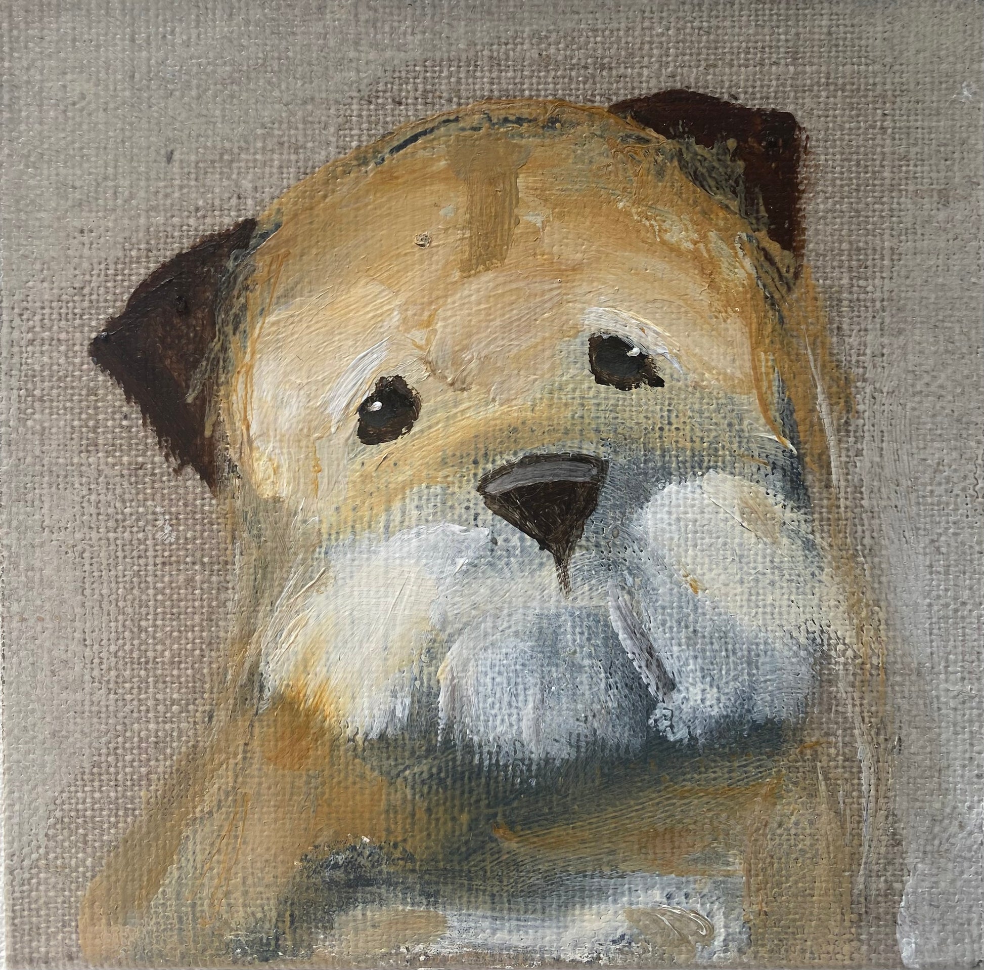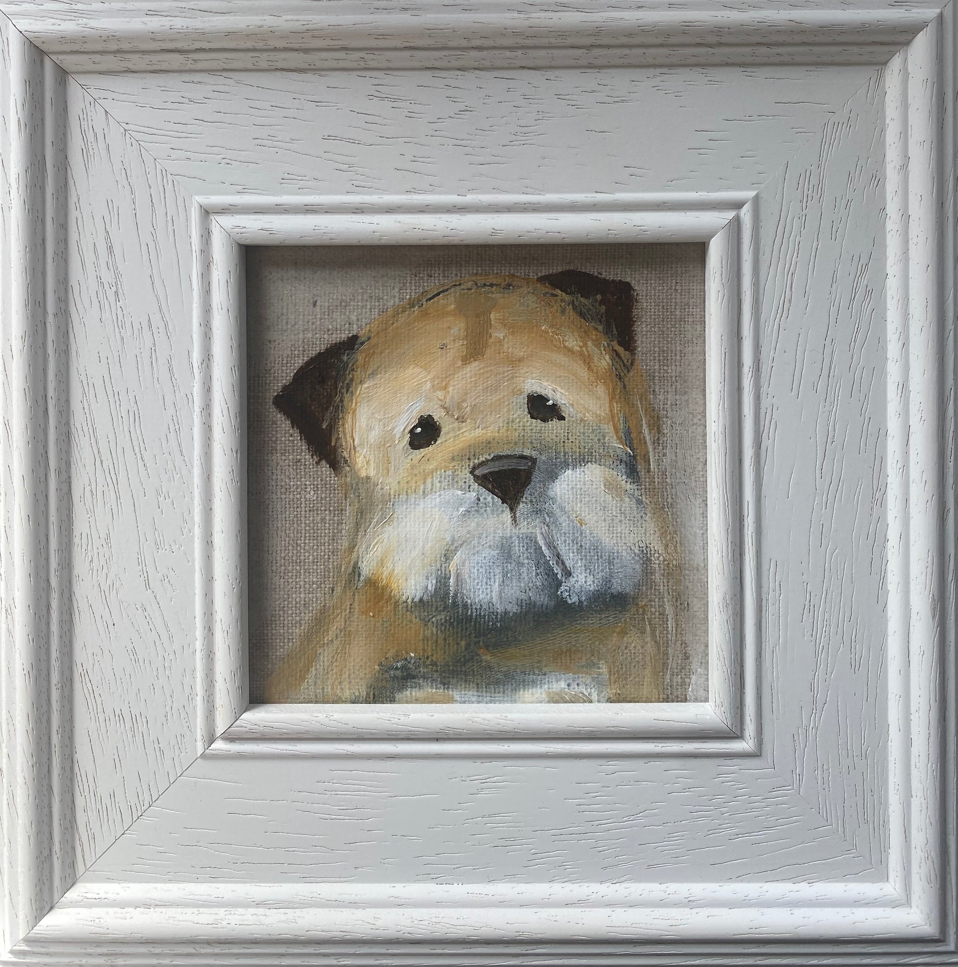 10cm x 10cm acrylic on linen board in a bespoke wooden frame