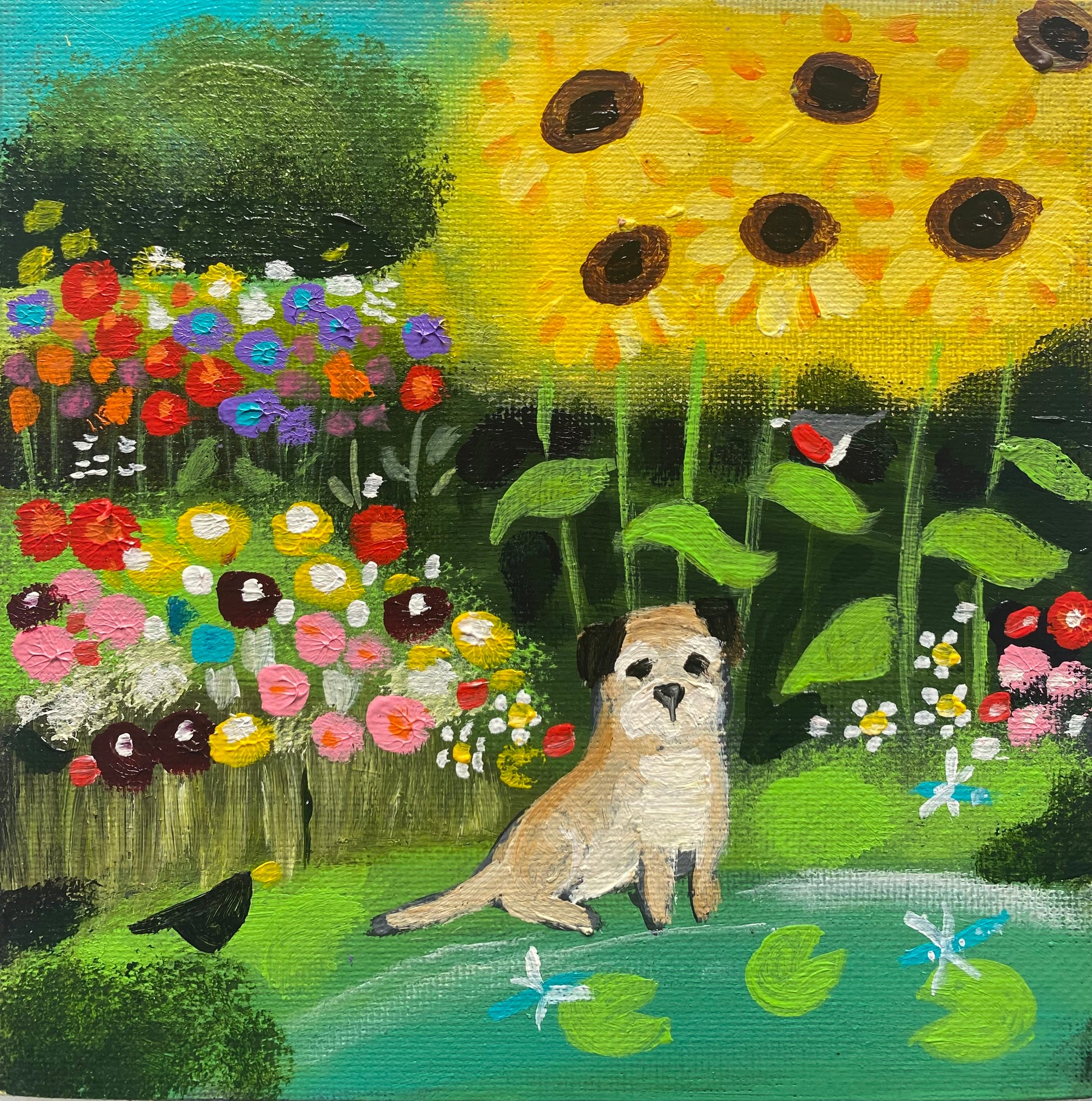 6” x 6” acrylic on canvas board in a bespoke wooden frame.