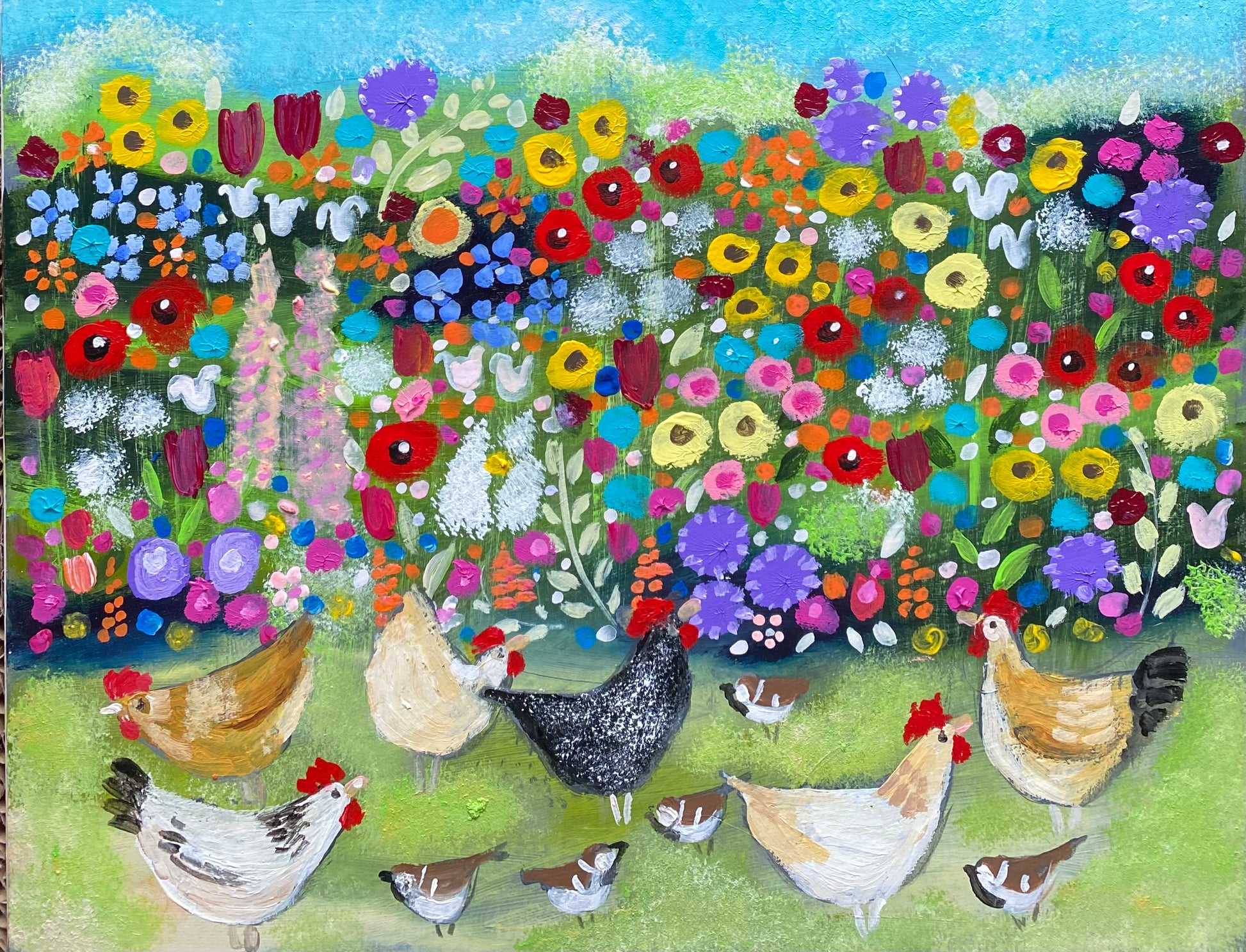 20cm x 25cm acrylic on card in a bespoke wooden frame.
