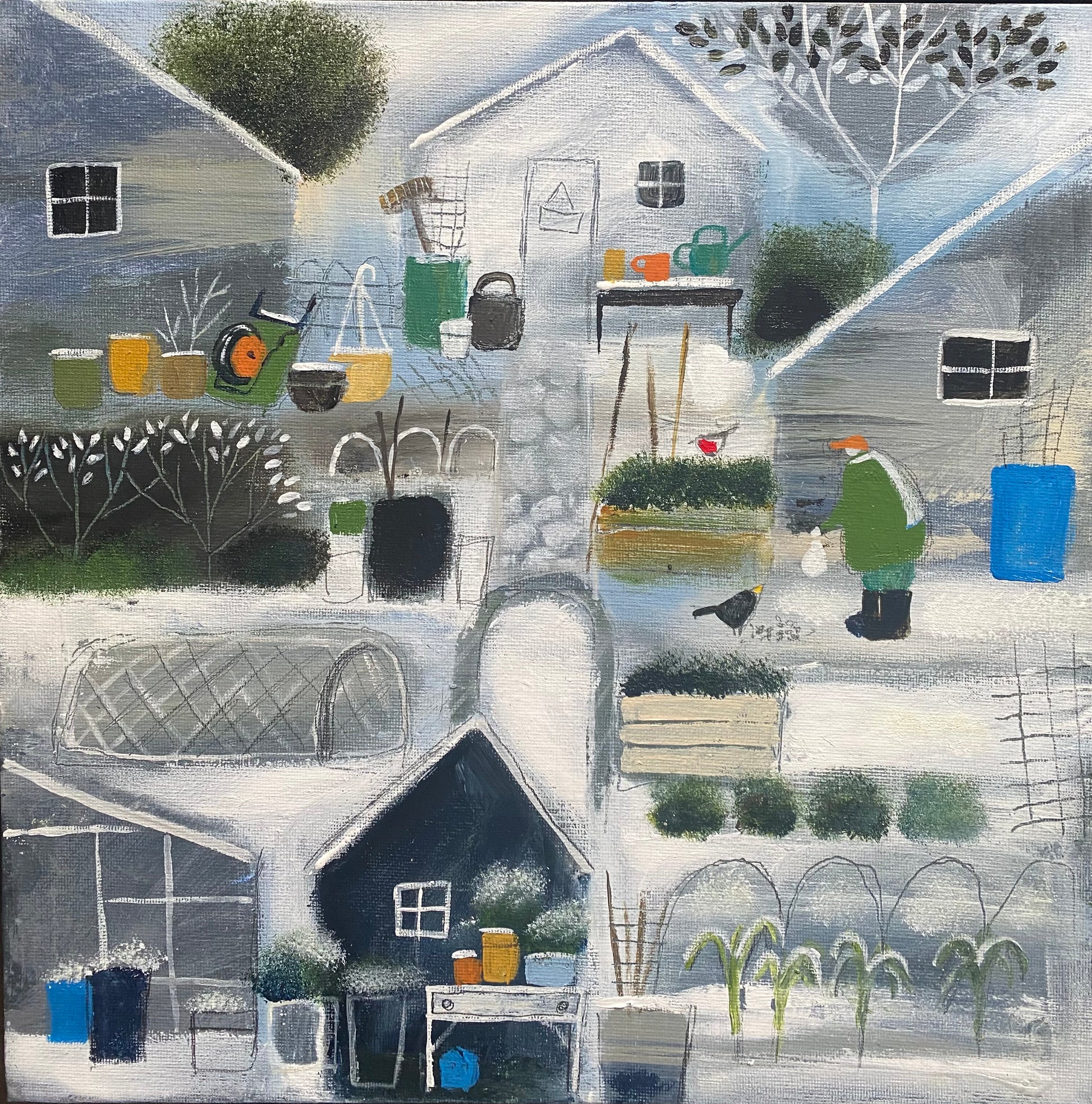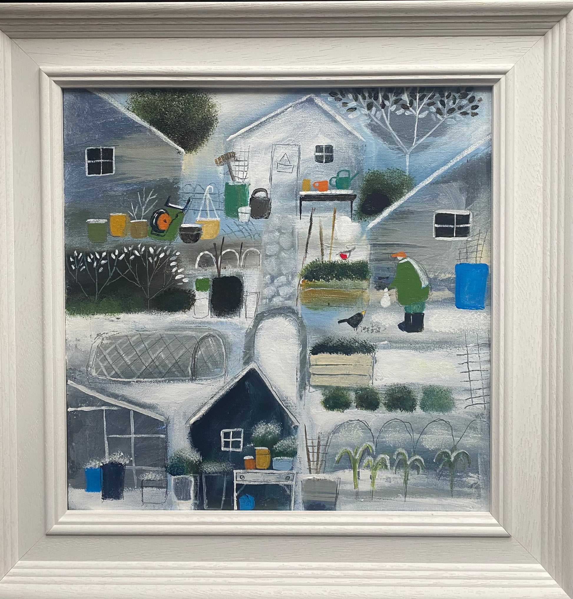 30cm x 30cm acrylic on canvas board. Price includes bespoke, white, wooden frame.
