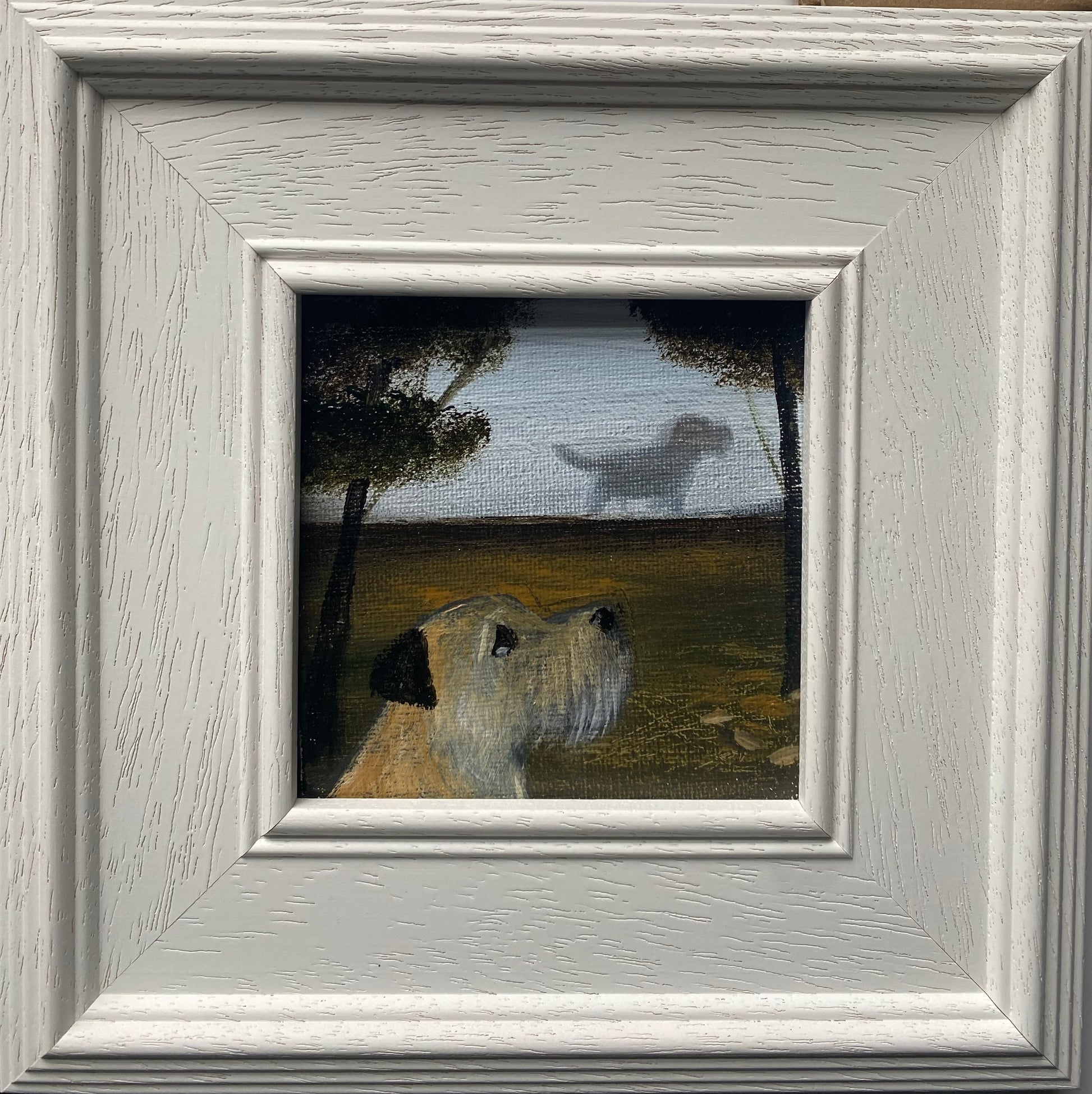 10cm x 10cm acrylic on canvas board in a bespoke wooden frame