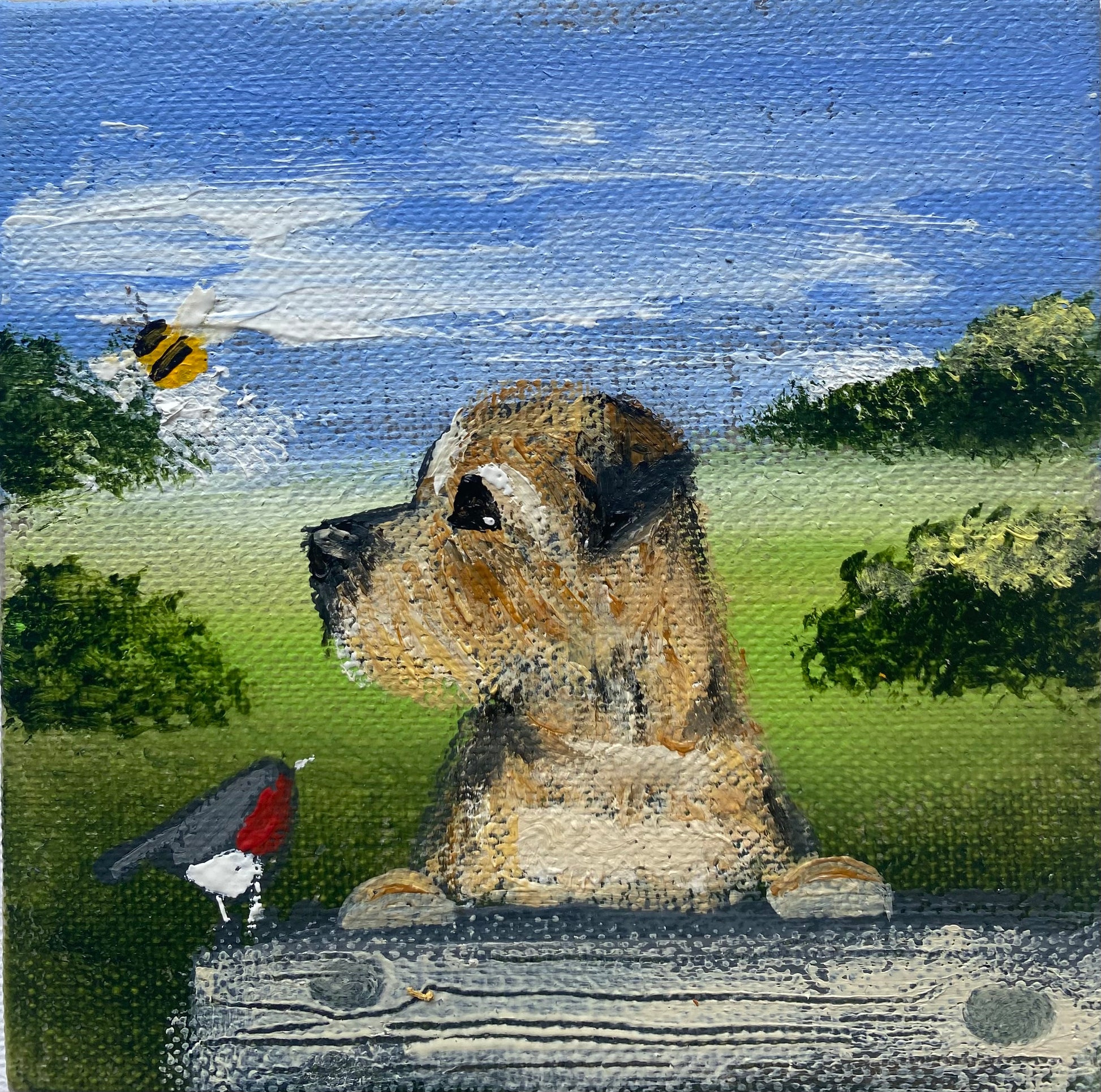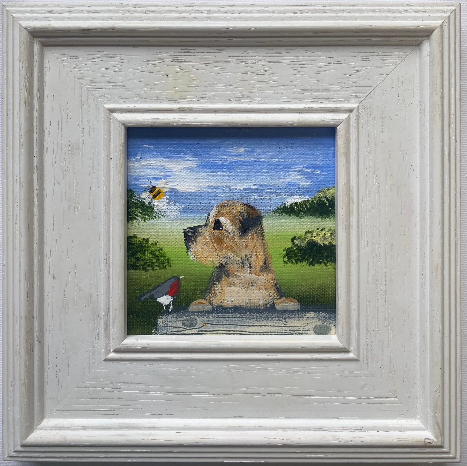 10cm x 10cm acrylic on linen board in a bespoke wooden frame