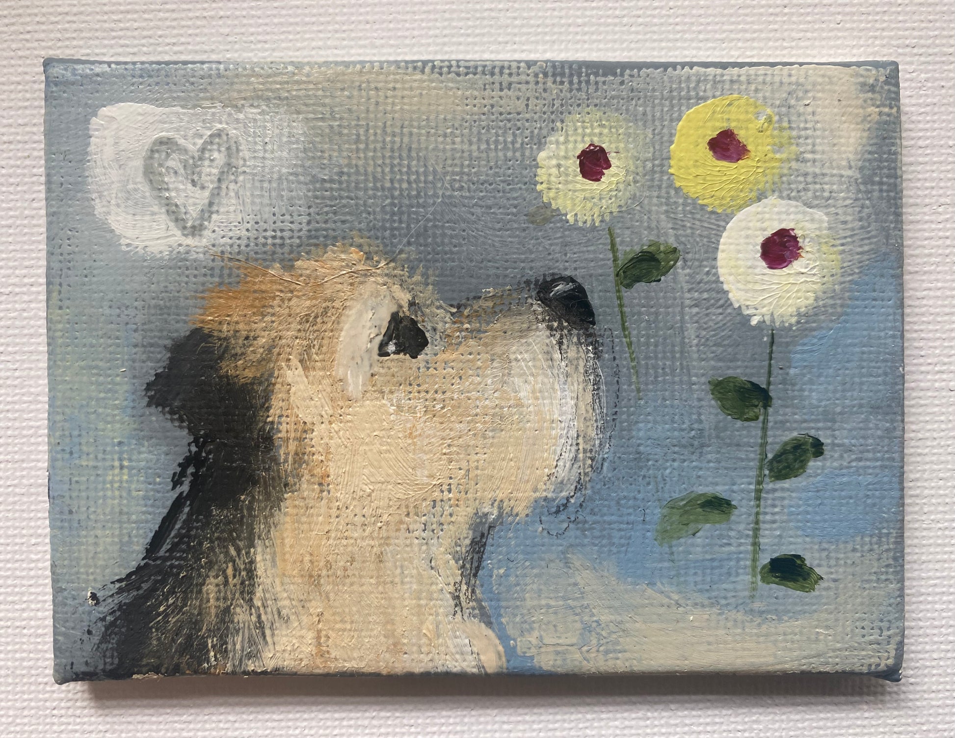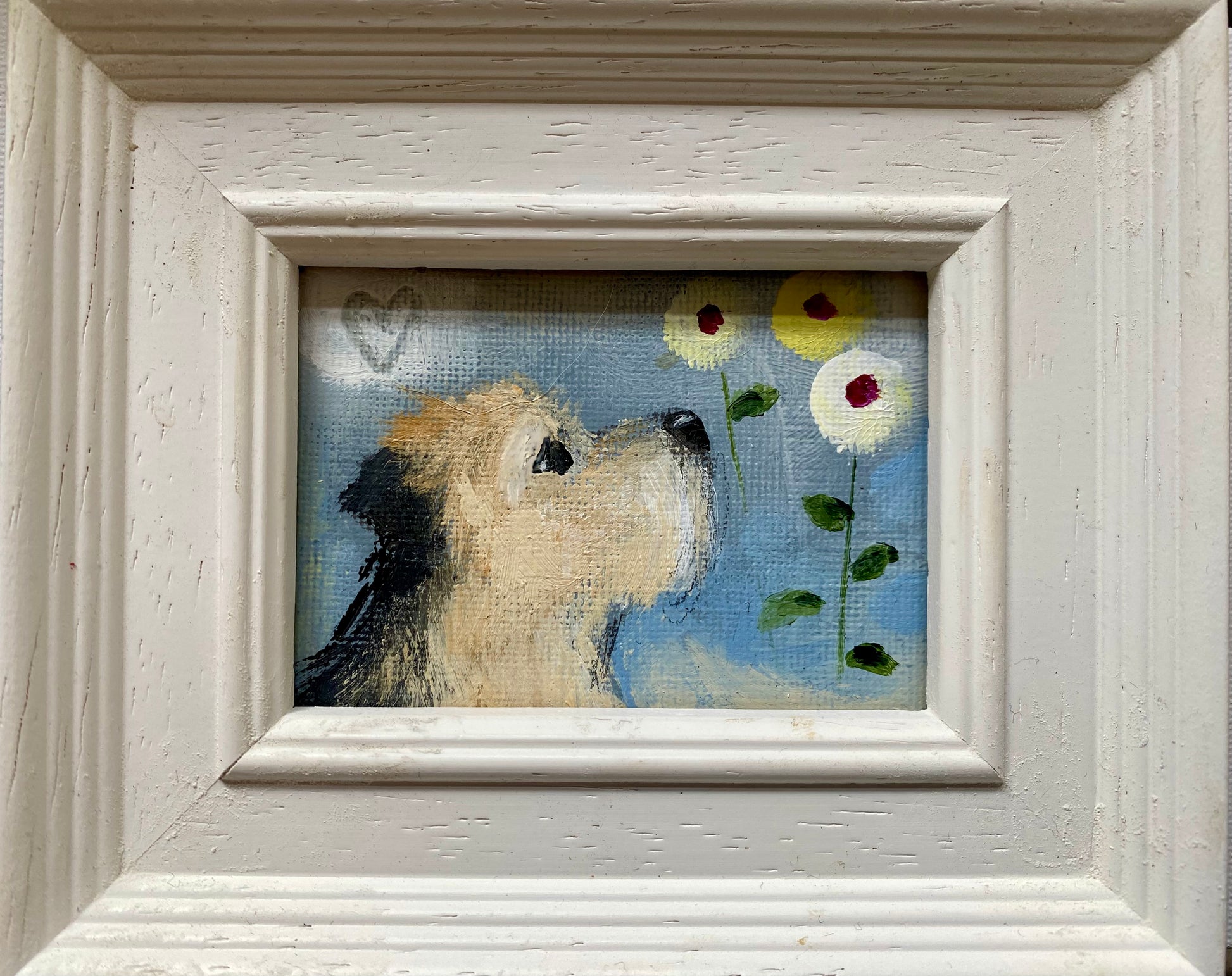 2,5” x 3.5” mini canvas board original in a bespoke wooden frame.