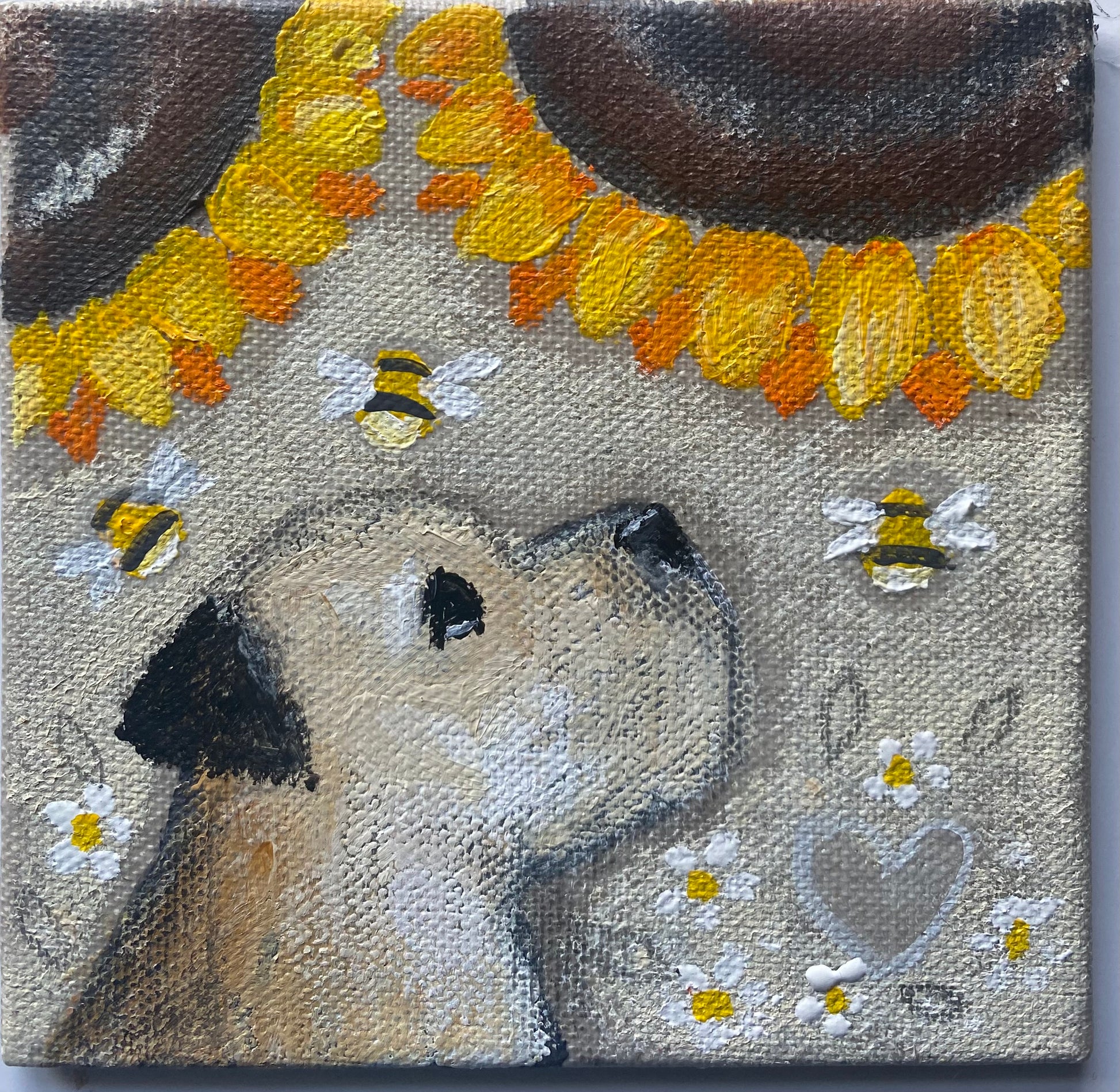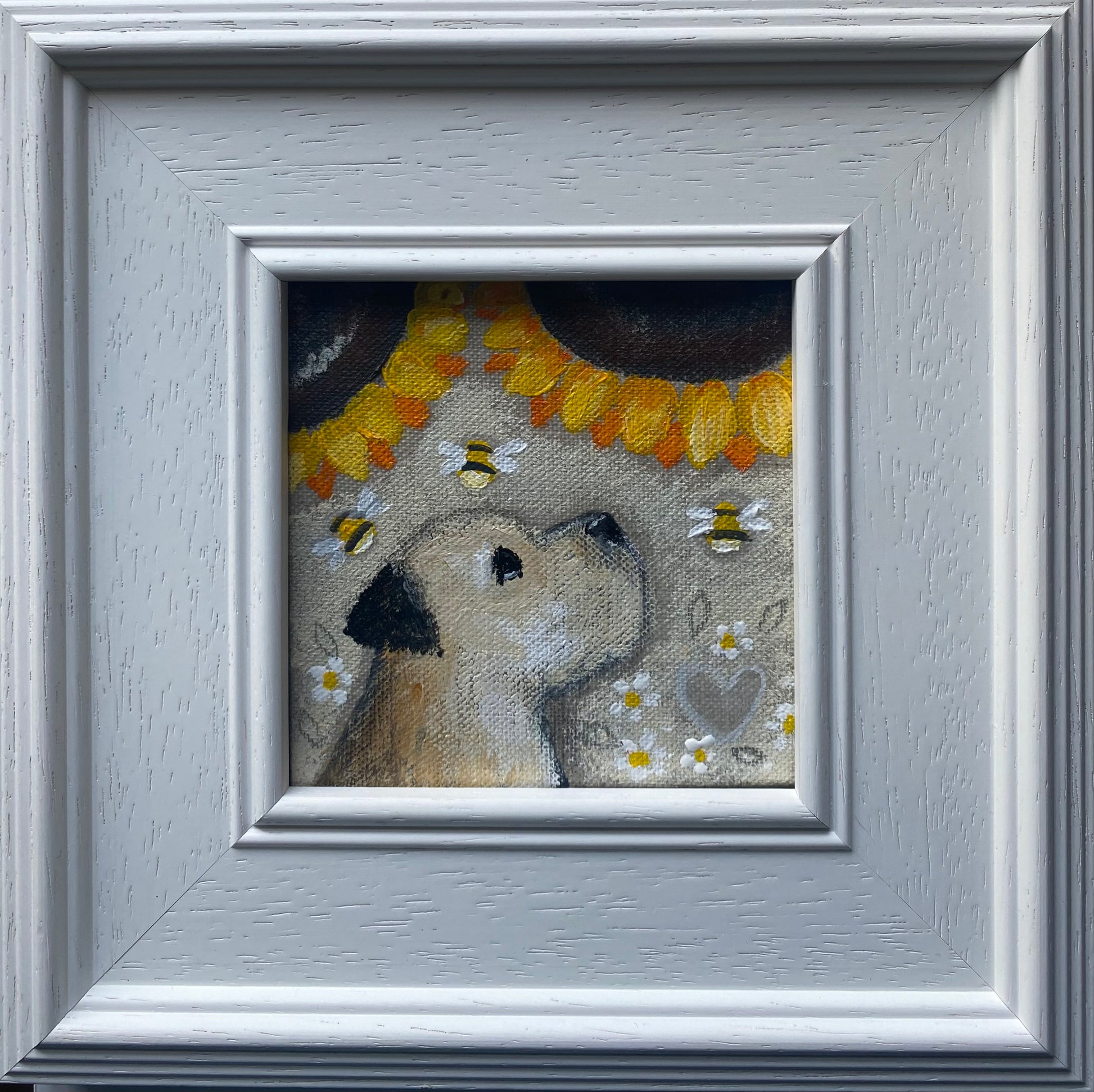 10cm x 10cm linen board in a bespoke white wooden frame.
