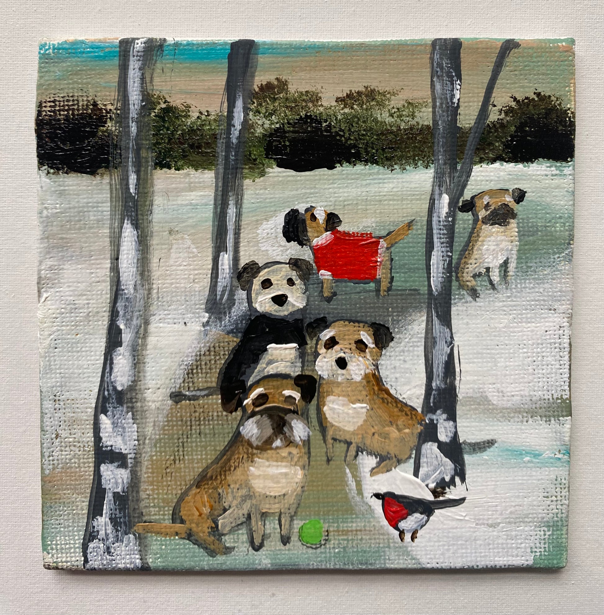 10cm x 10cm acrylic on canvas board in a bespoke wooden frame