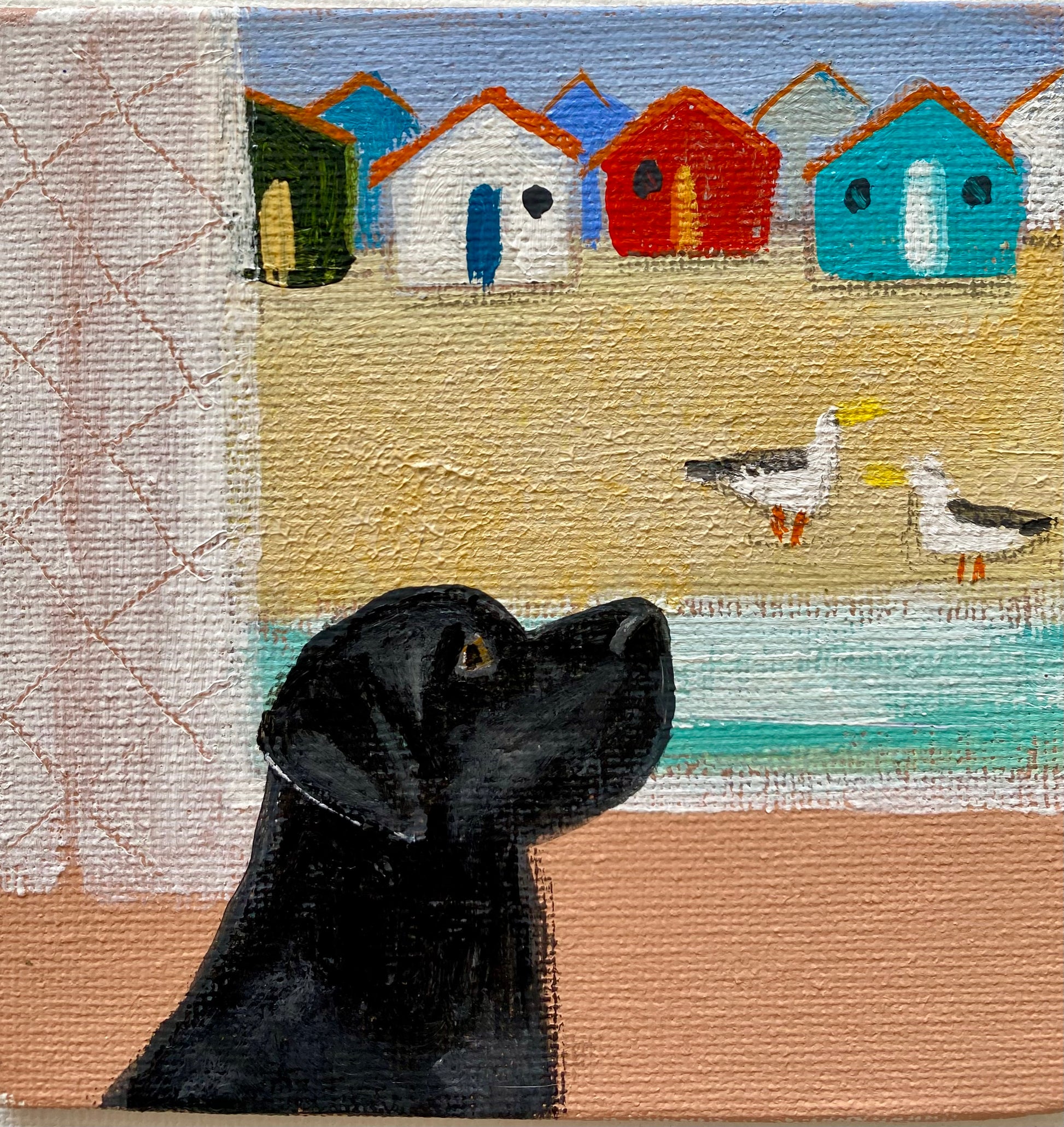 10cm x 10cm acrylic on canvas board in a bespoke wooden frame