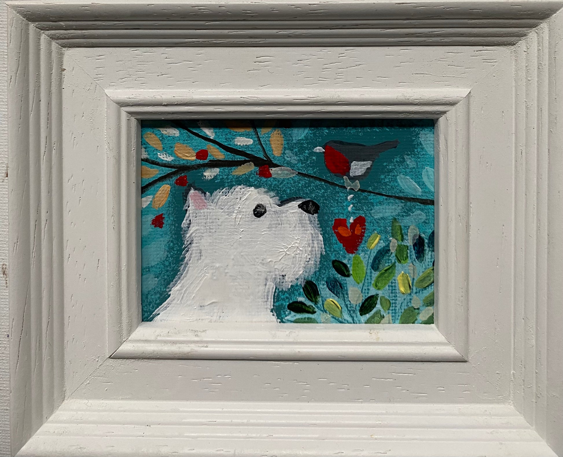 2.5” x 3.5” mini canvas board original in a bespoke wooden frame