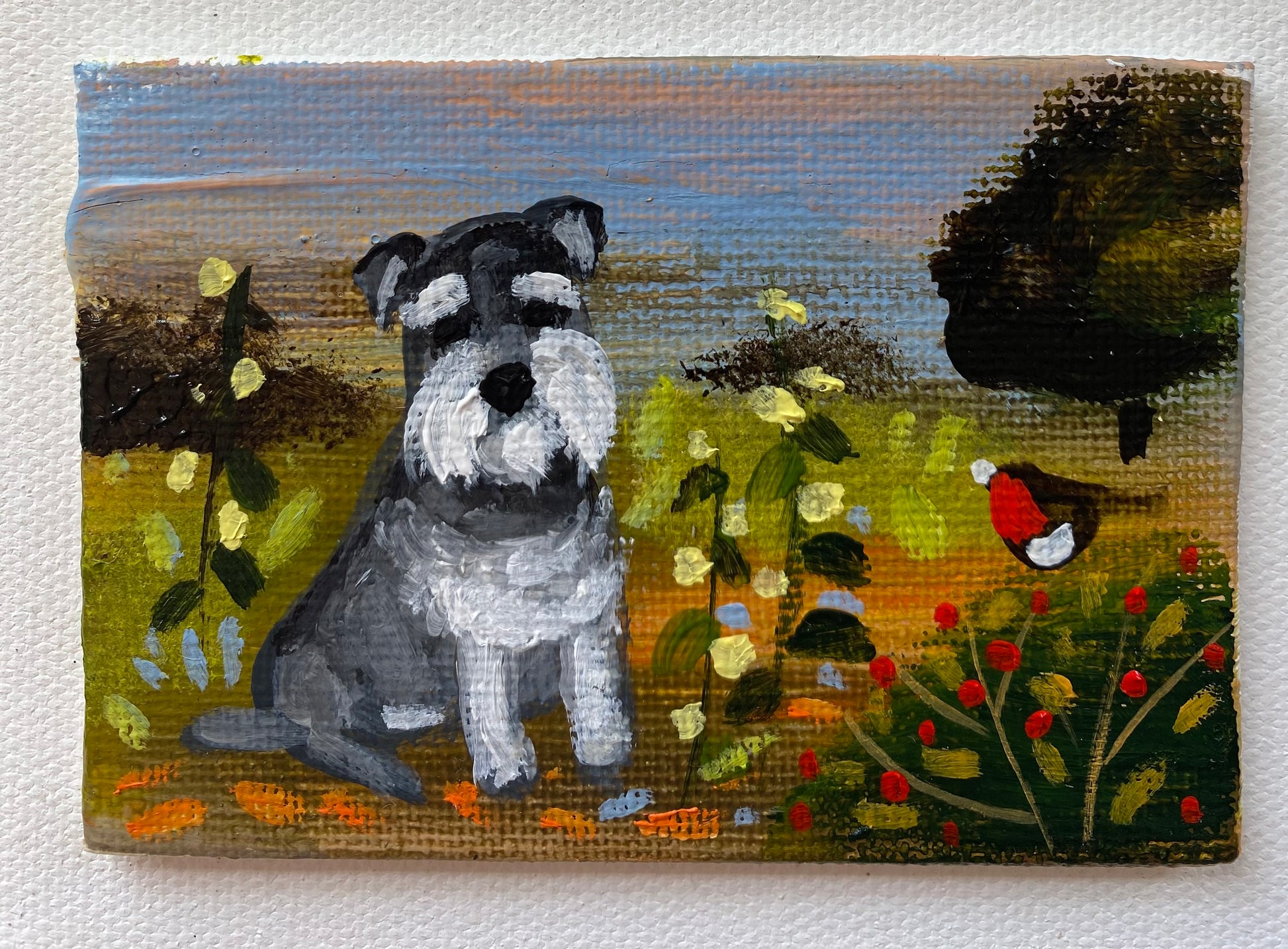 2.5” x 3.5” mini canvas board in a bespoke wooden frame