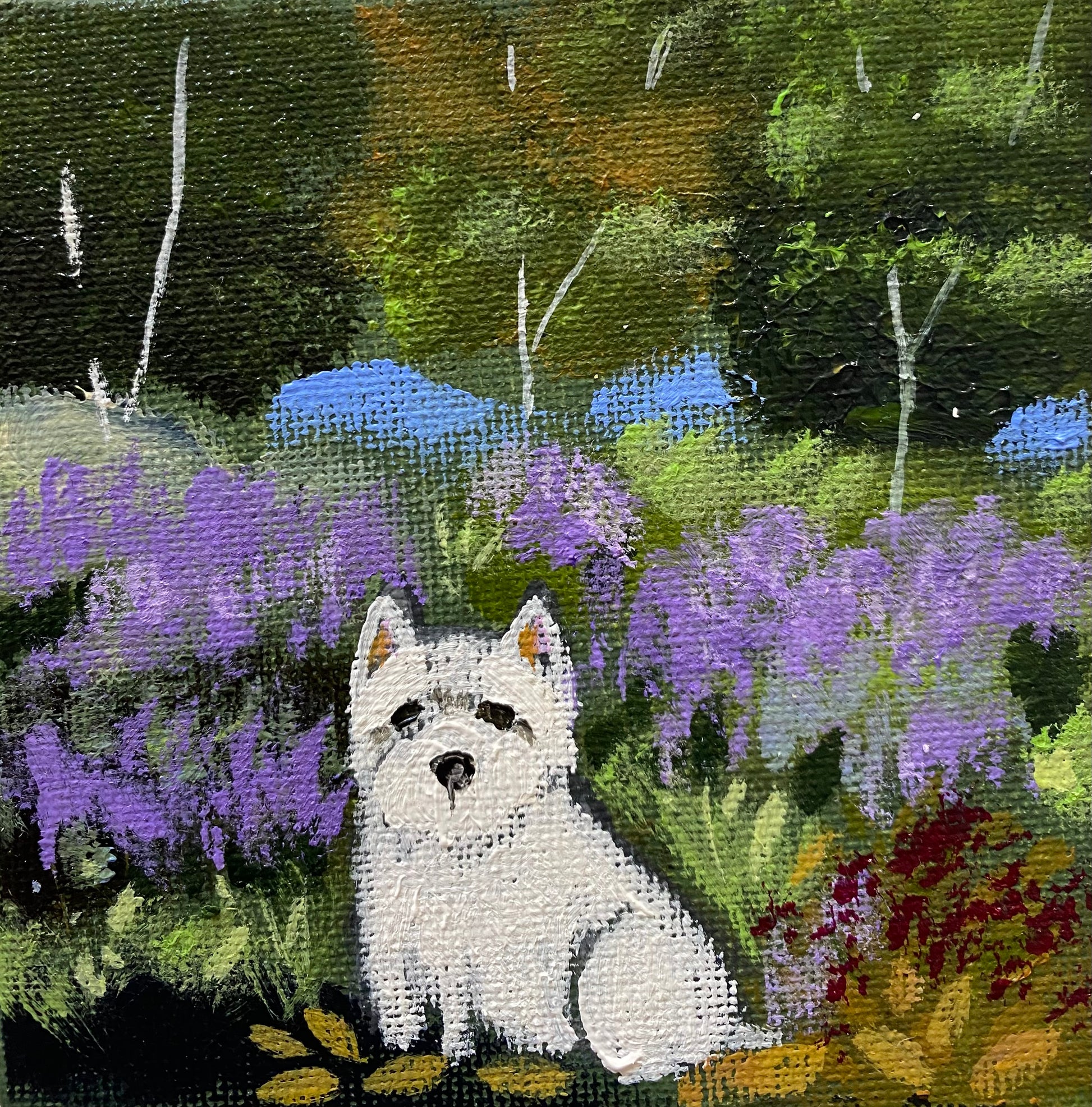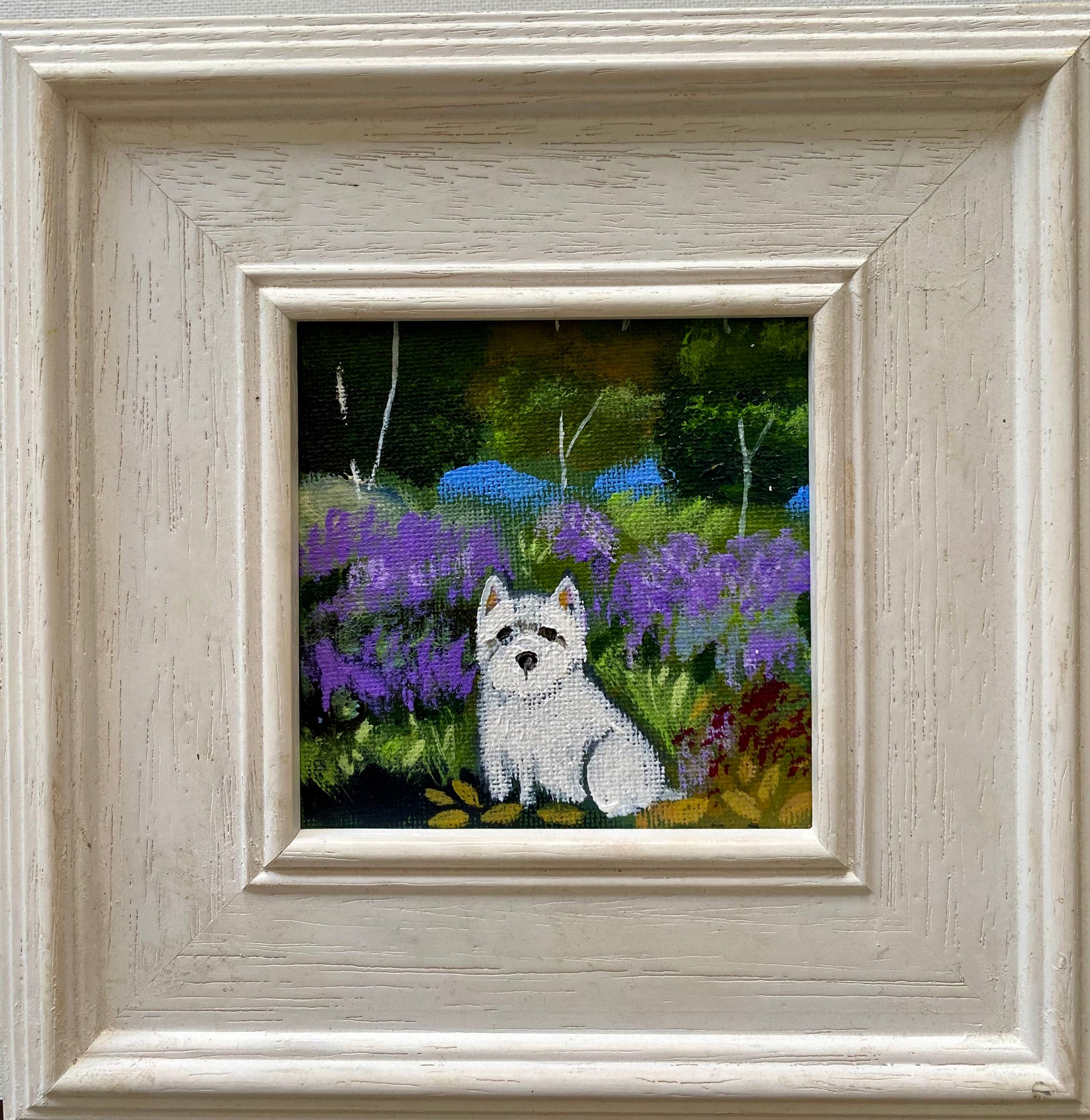 10cm x 10cm acrylic on canvas board in a bespoke wooden frame