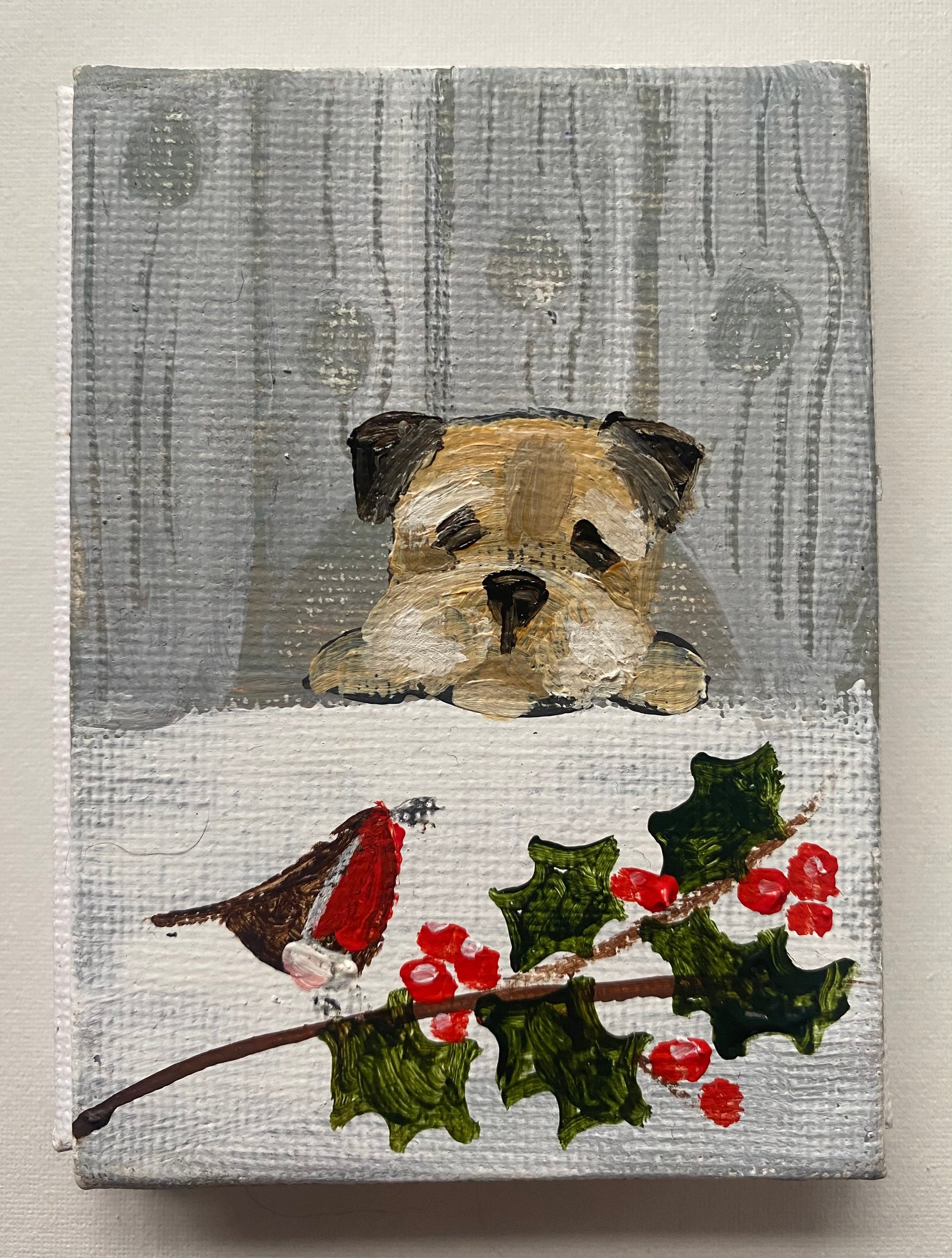 2.5” x 3.5” mini canvas board in a bespoke wooden frame