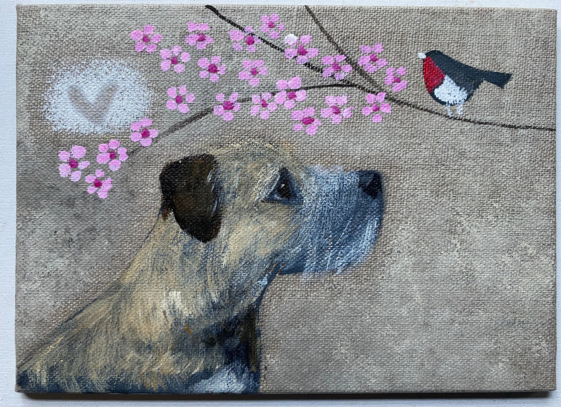 5” x 7” acrylic on linen board in a bespoke wooden frame.