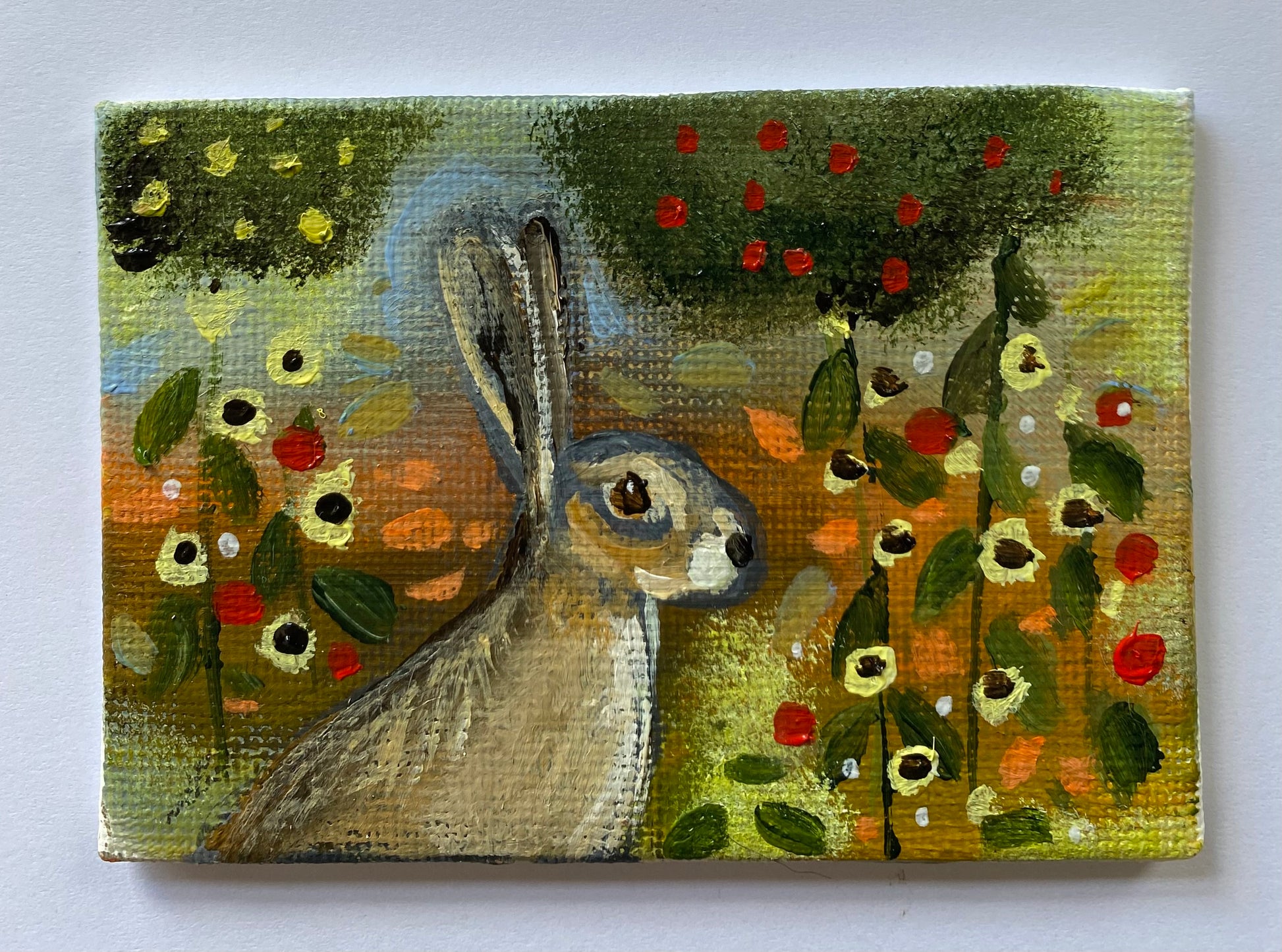 2.5” x 3.5” mini canvas board in a bespoke wooden frame